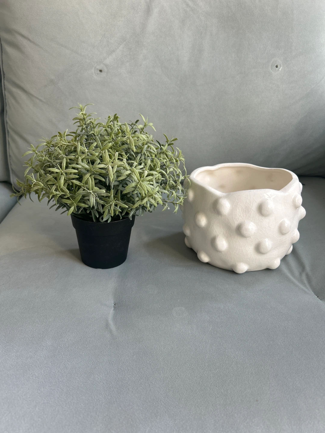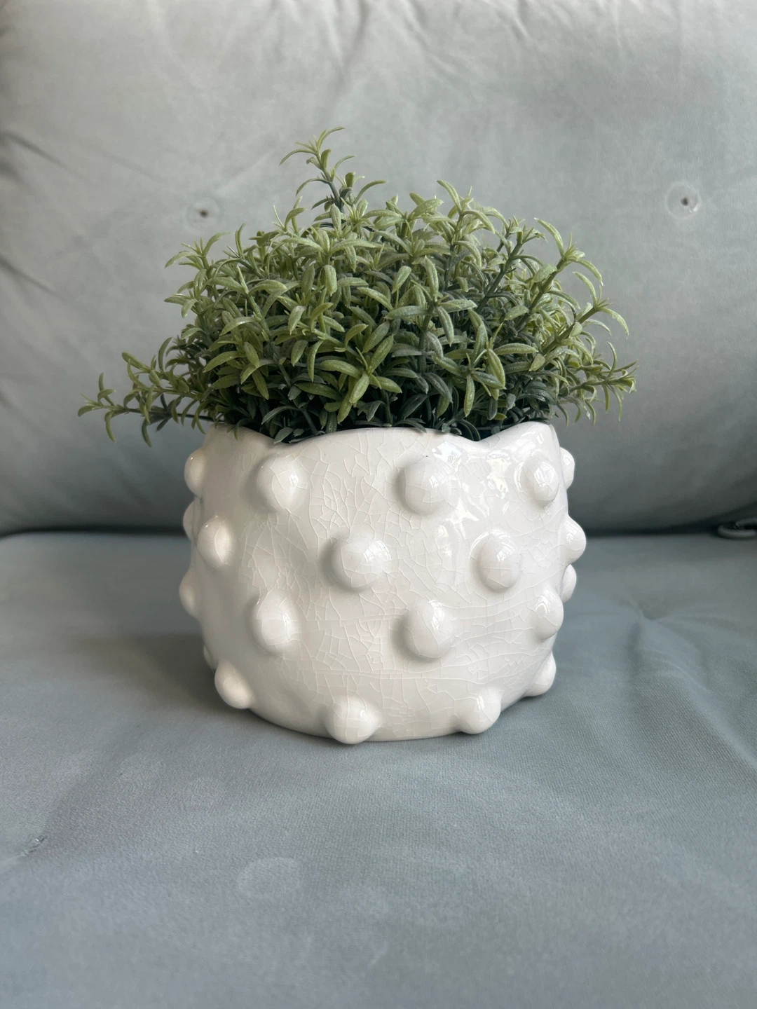 White Ceramic Bubble Planter + Faux Plant