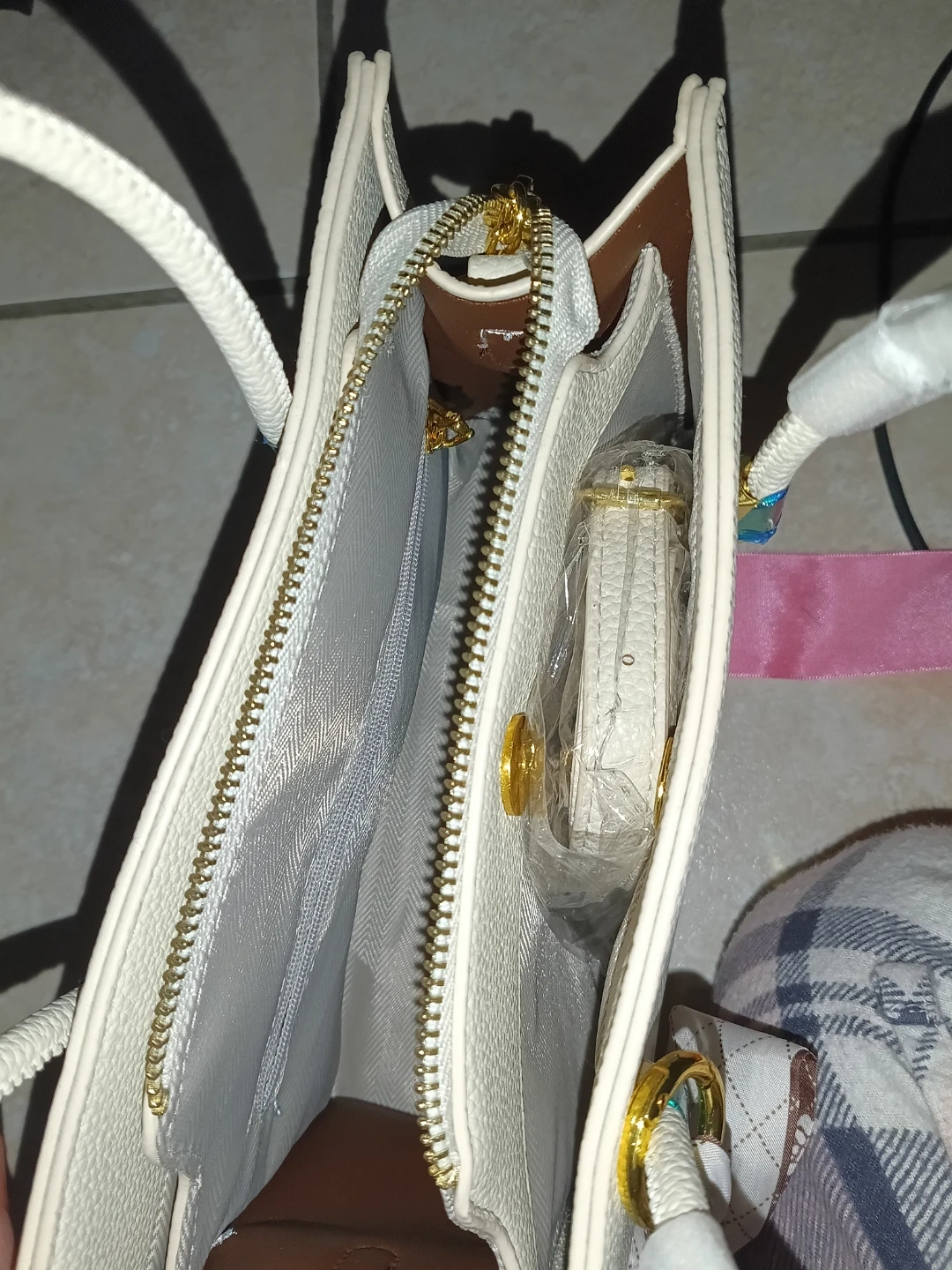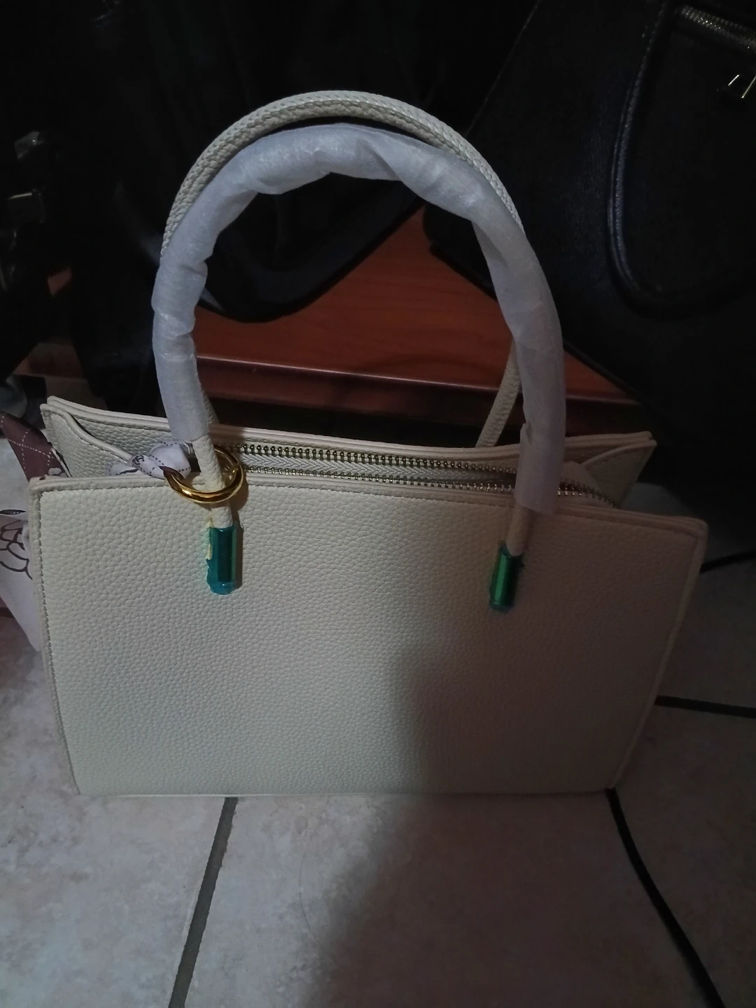 Selling a cute ivory-colored handbag! It features a stylish scarf tied to the handle, adding a touch of flair. The bag has a zippered closure and a spacious interior with multiple compartments. Perfect for everyday use or a special occasion!