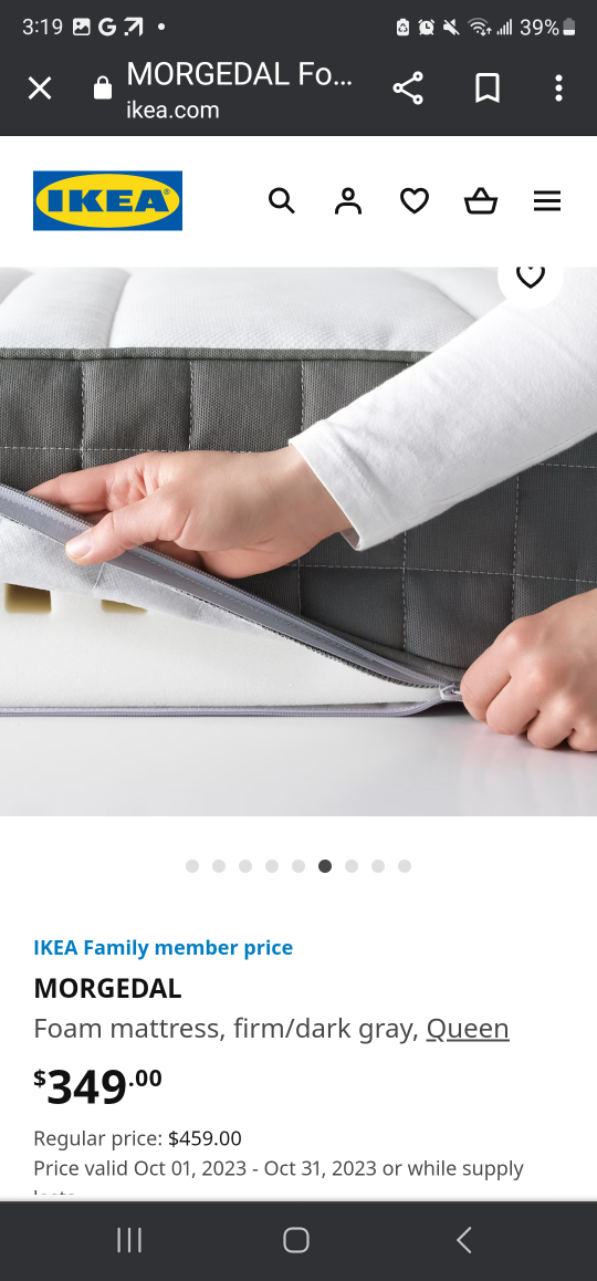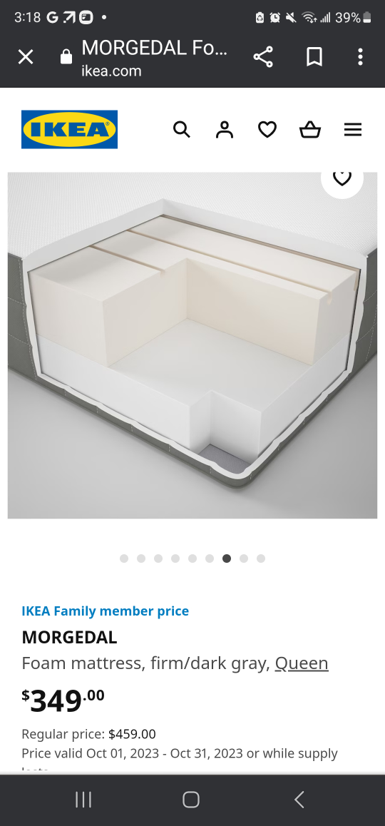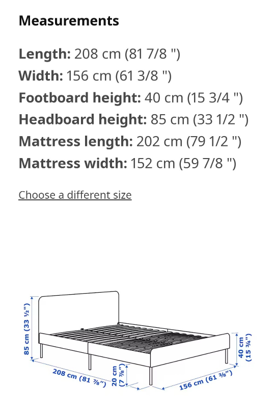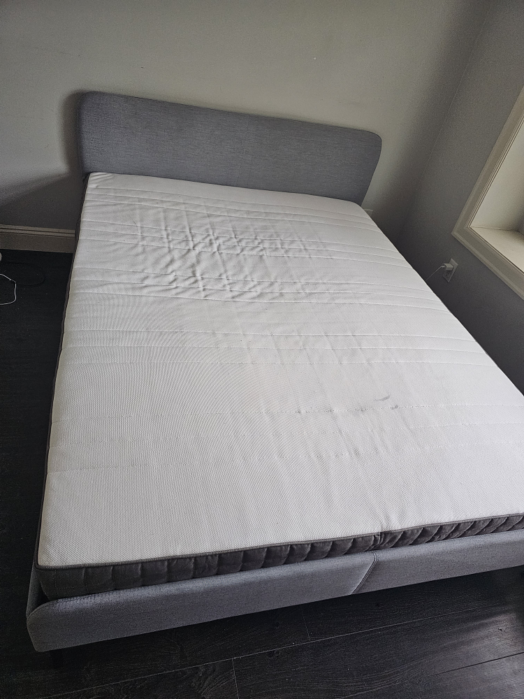 Ikea queen bed frame Slattum and mattress Morguedal