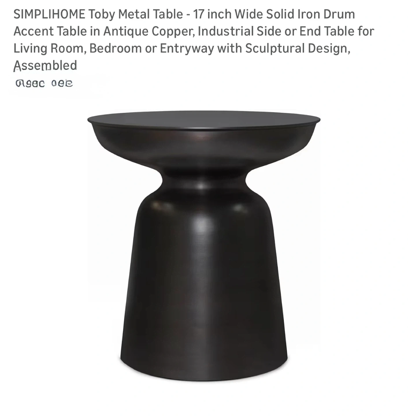 This SIMPLIHOME Toby Metal Table is 18 inches tall with a 16.5-inch wide top. It's crafted from solid iron for durability. It's assembled and ready for use!