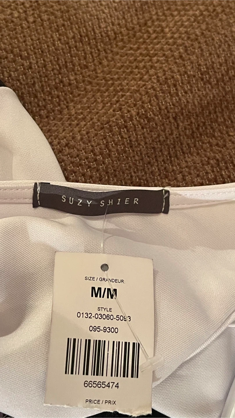 Suzy Shier Women's White and Black Peplum Dress - Size M