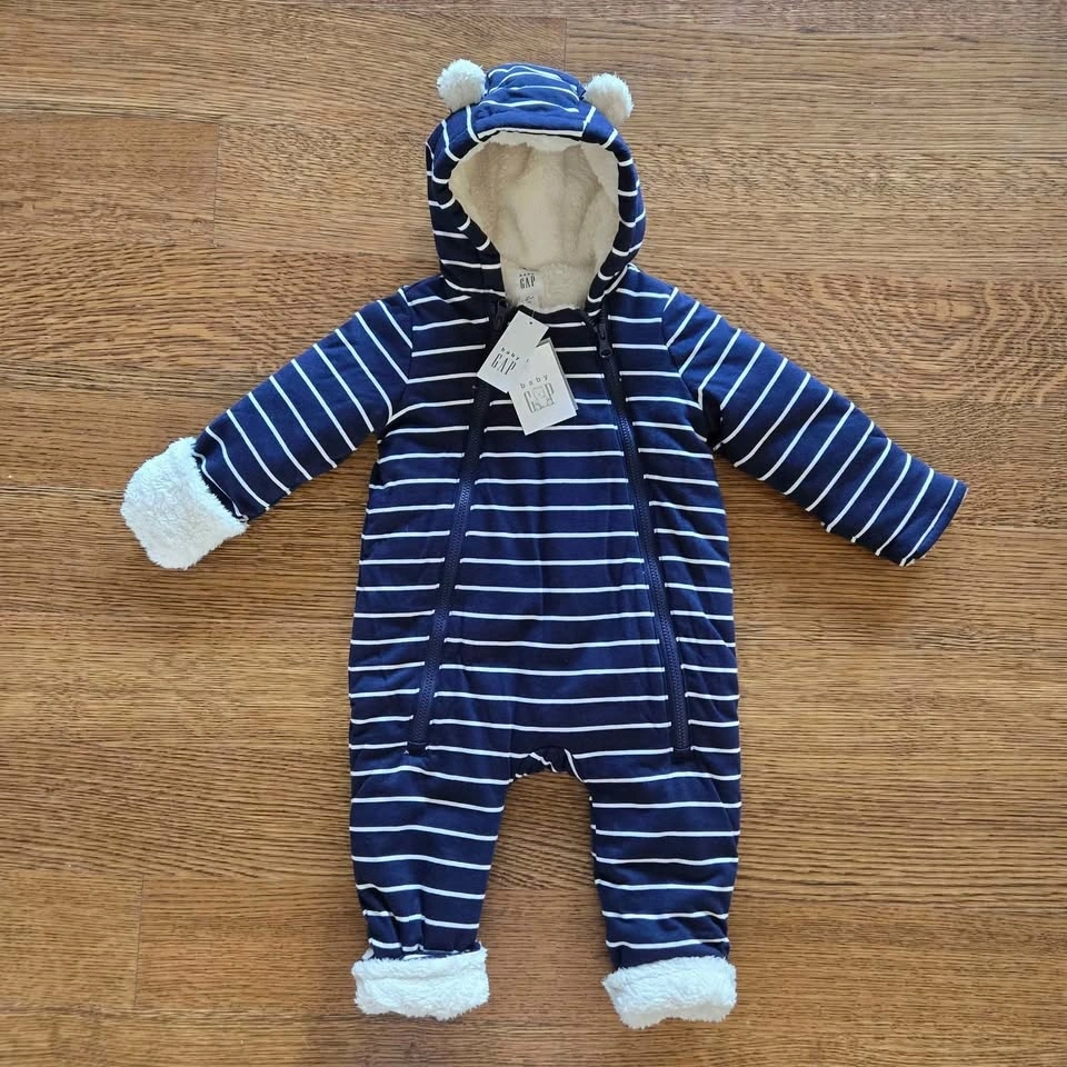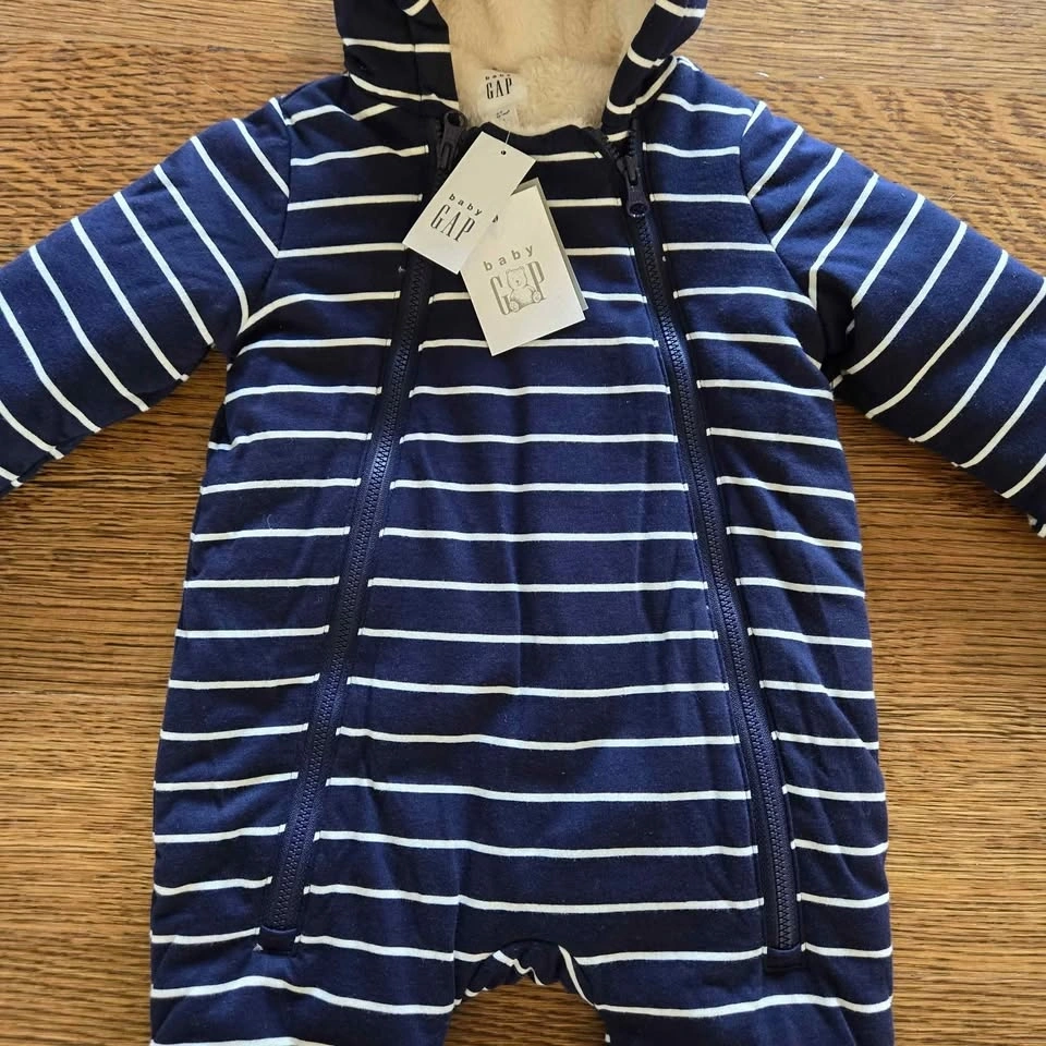 NWT GAP Baby Sherpa One-Piece Hoodie Navy Blue 3-6 Months