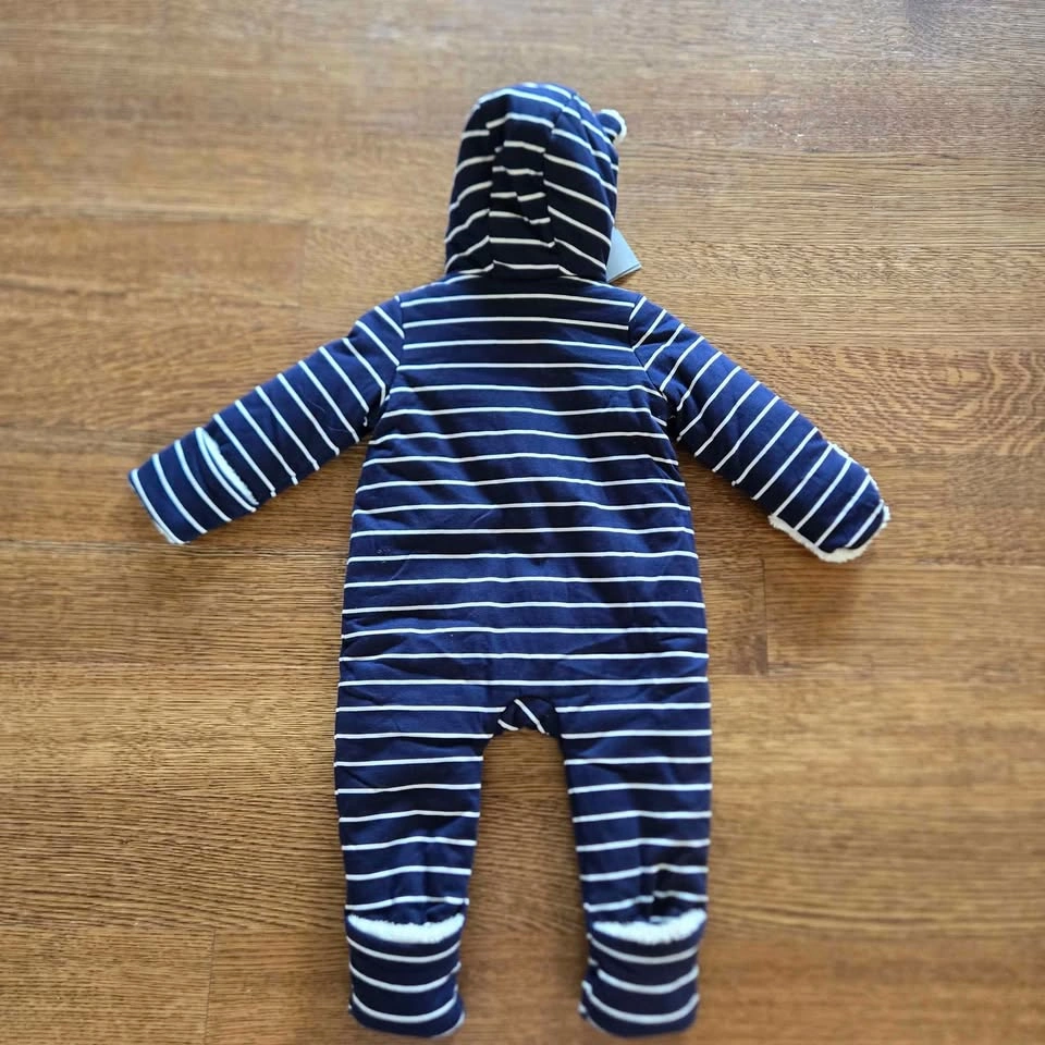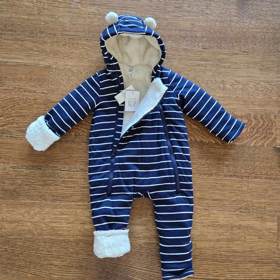 NWT GAP Baby Sherpa One-Piece Hoodie Navy Blue 3-6 Months