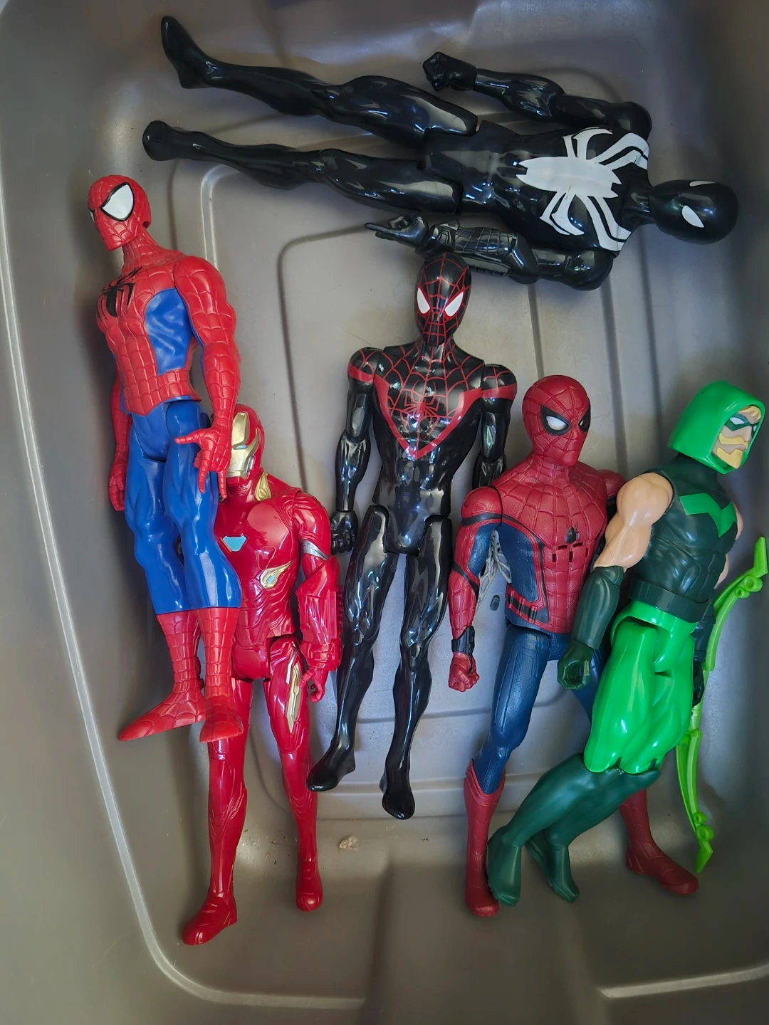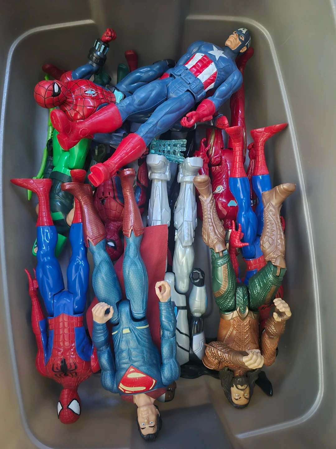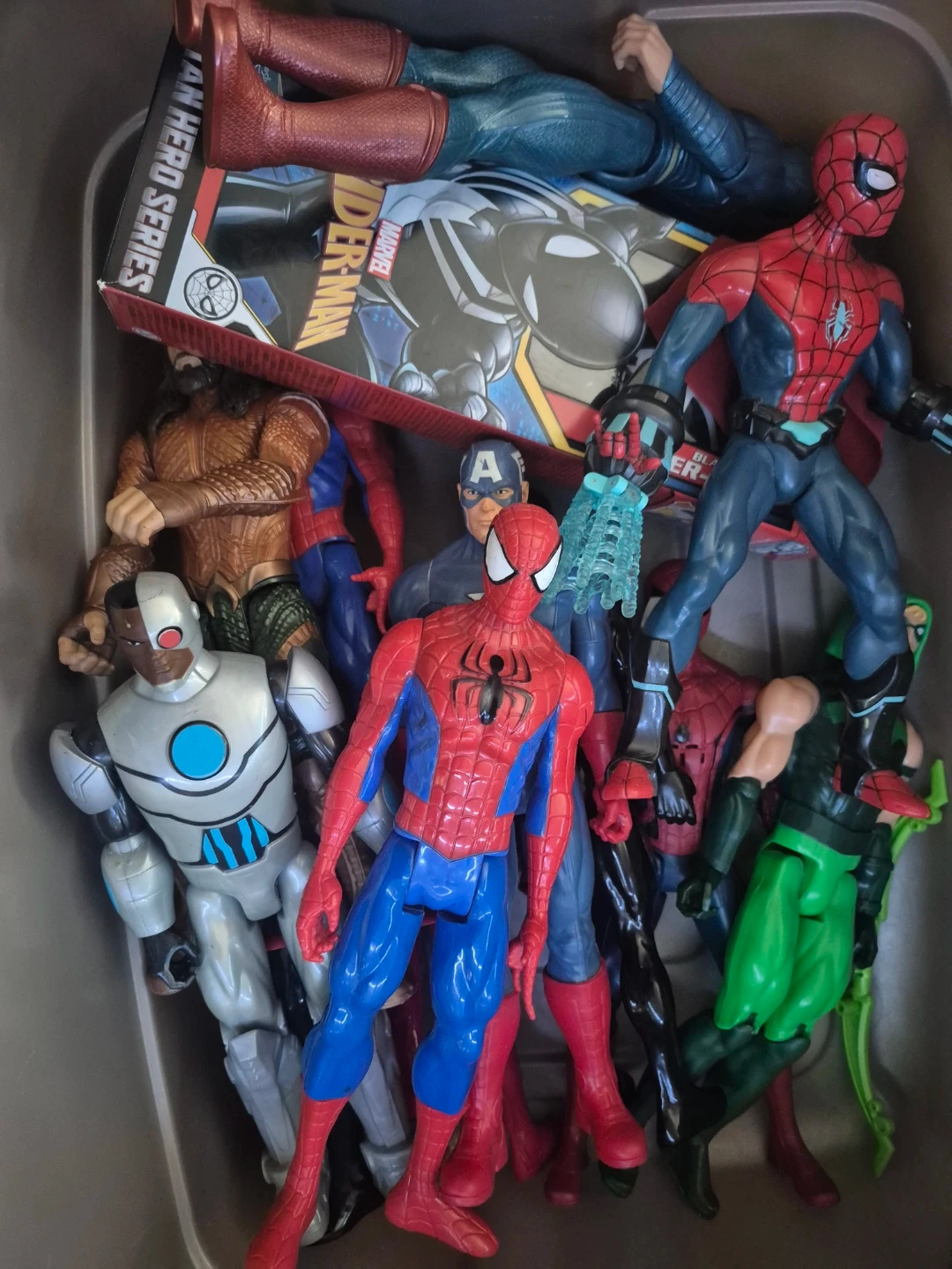 Collection of Marvel Titan Hero Series action figures. Includes Spider-Man, Captain America, Iron Man, Superman, Cyborg, and others. Figures are assorted and come as shown.