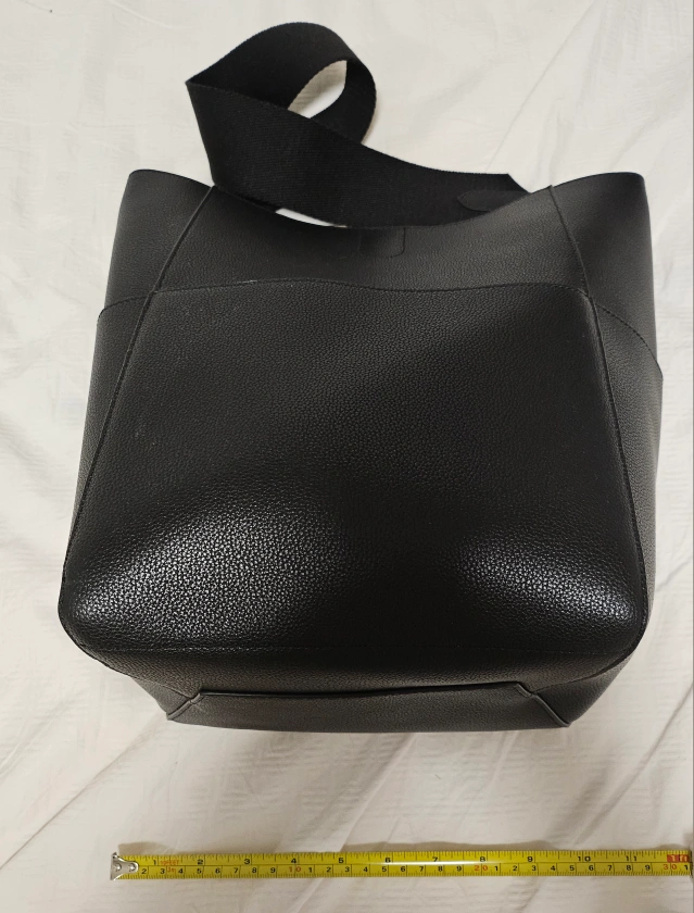 Black leather bag. A large bag with a wide strap. Includes pockets on the inside. Perfect for carrying all your essentials, making your life a little easier.