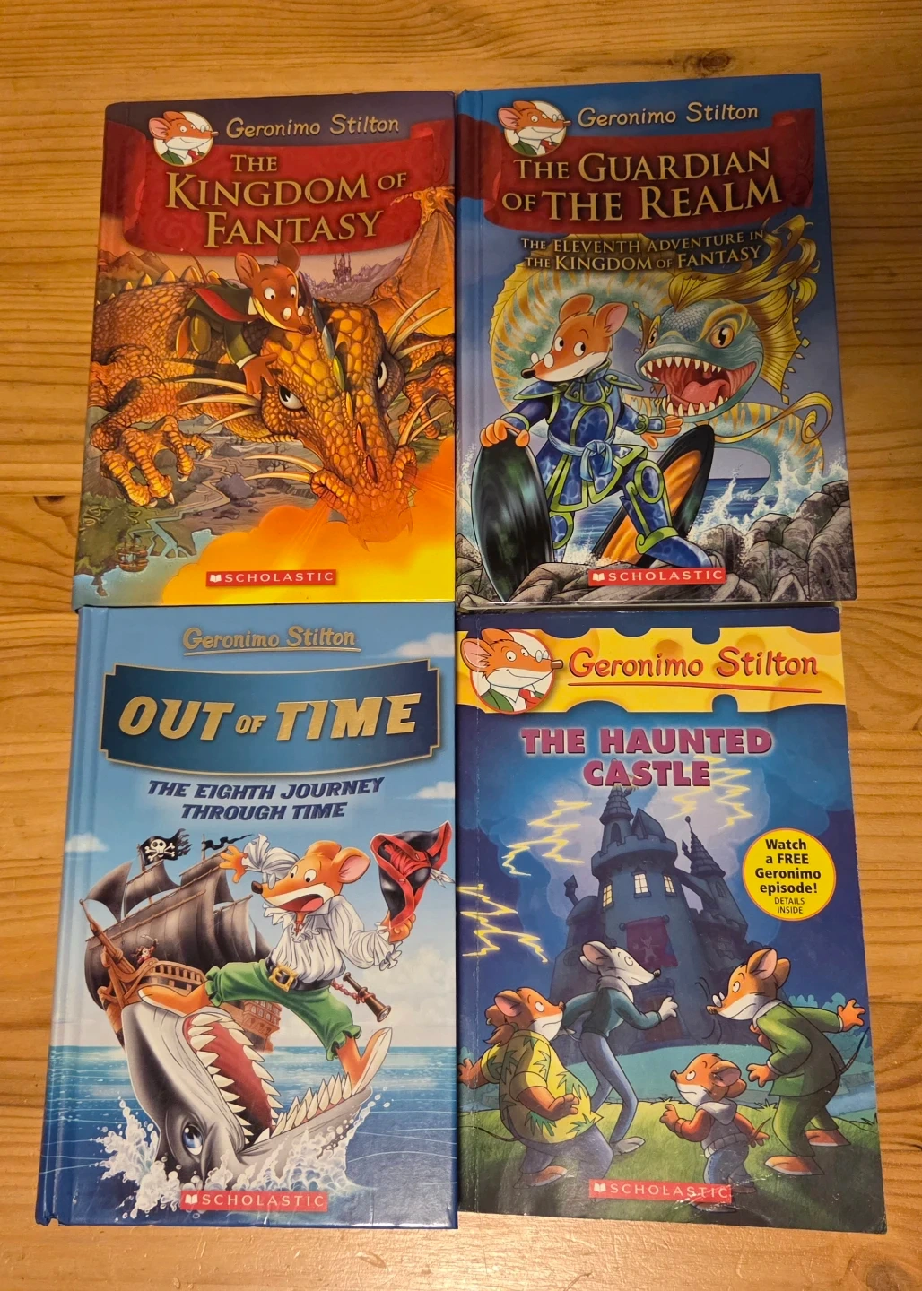 Four Geronimo Stilton books are included: The Kingdom of Fantasy, The Guardian of the Realm, Out of Time, and The Haunted Castle.