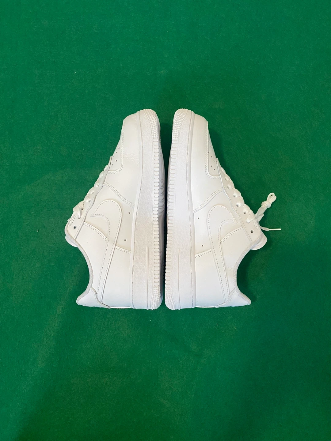 Selling a pair of classic Nike Air Force 1 sneakers in white. They're in great condition and ready for a new owner! These iconic shoes are known for their comfort and style, perfect for everyday wear.