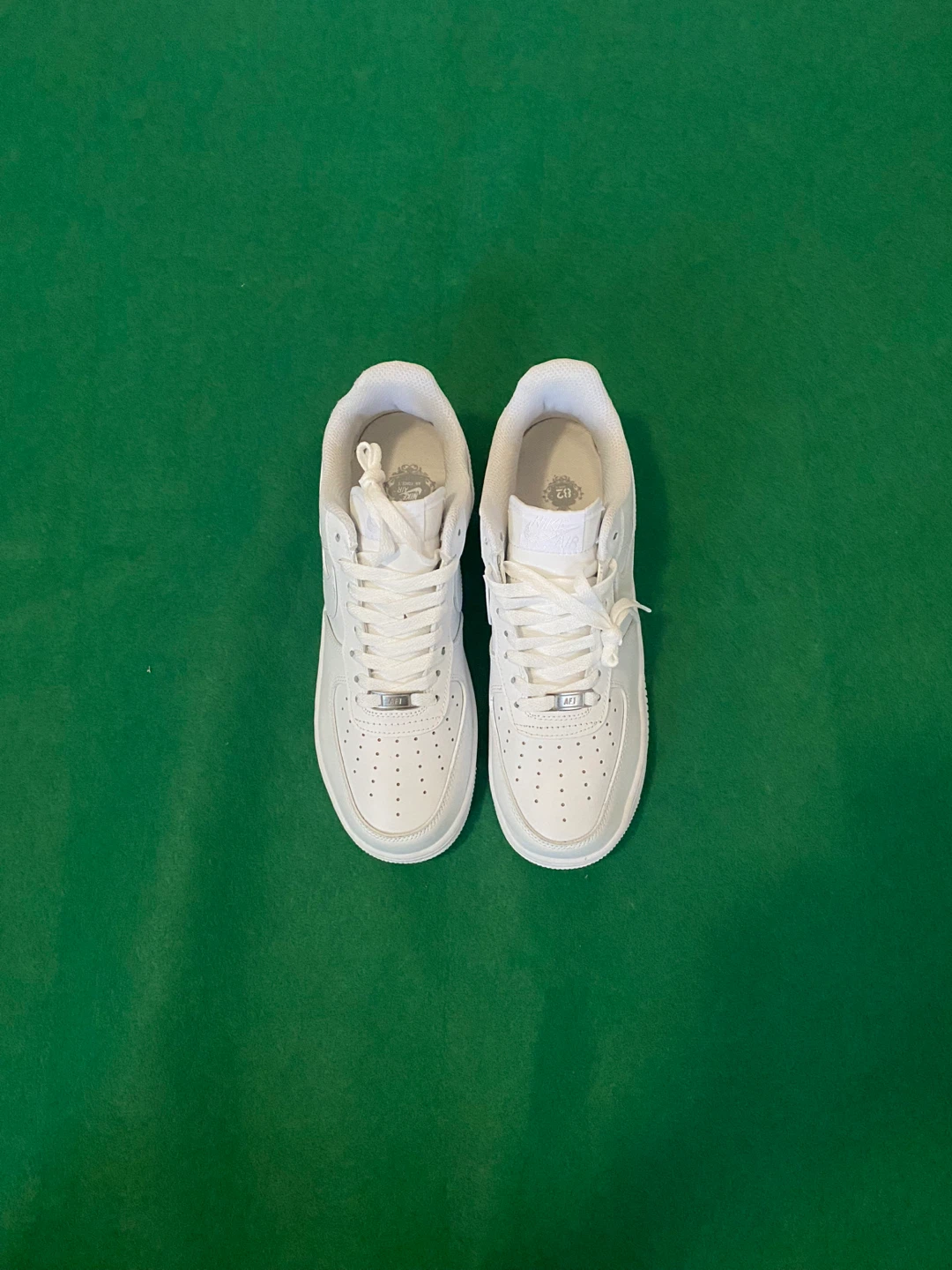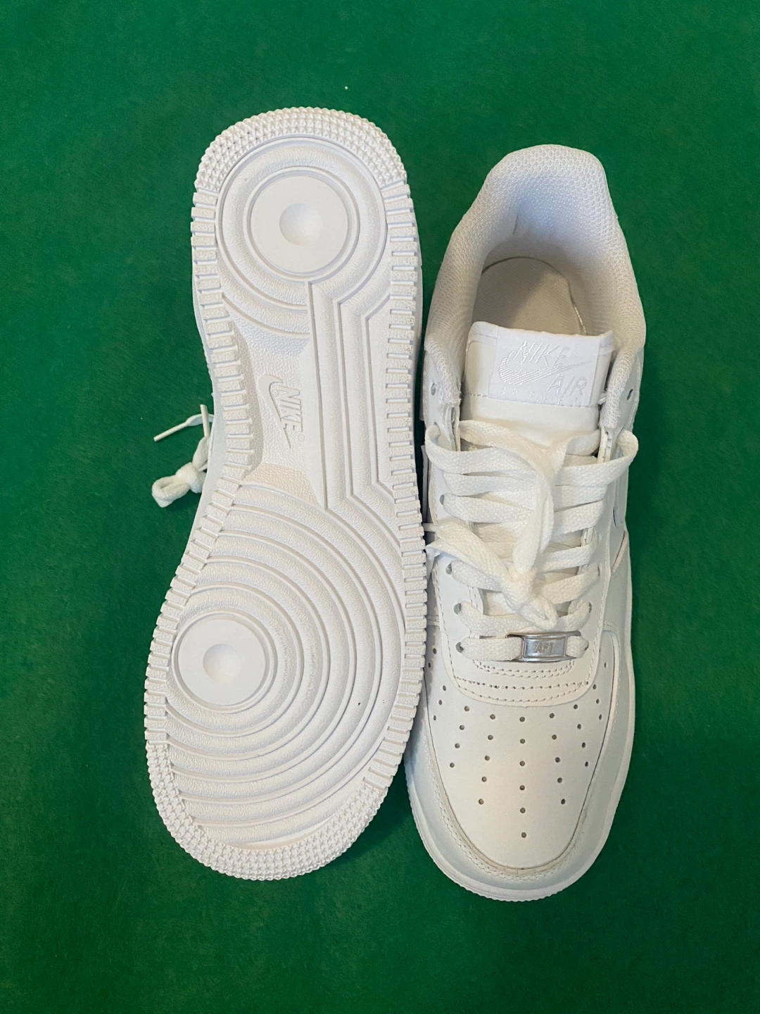 Selling a pair of classic Nike Air Force 1 sneakers in white. They're in great condition and ready for a new owner! These iconic shoes are known for their comfort and style, perfect for everyday wear.