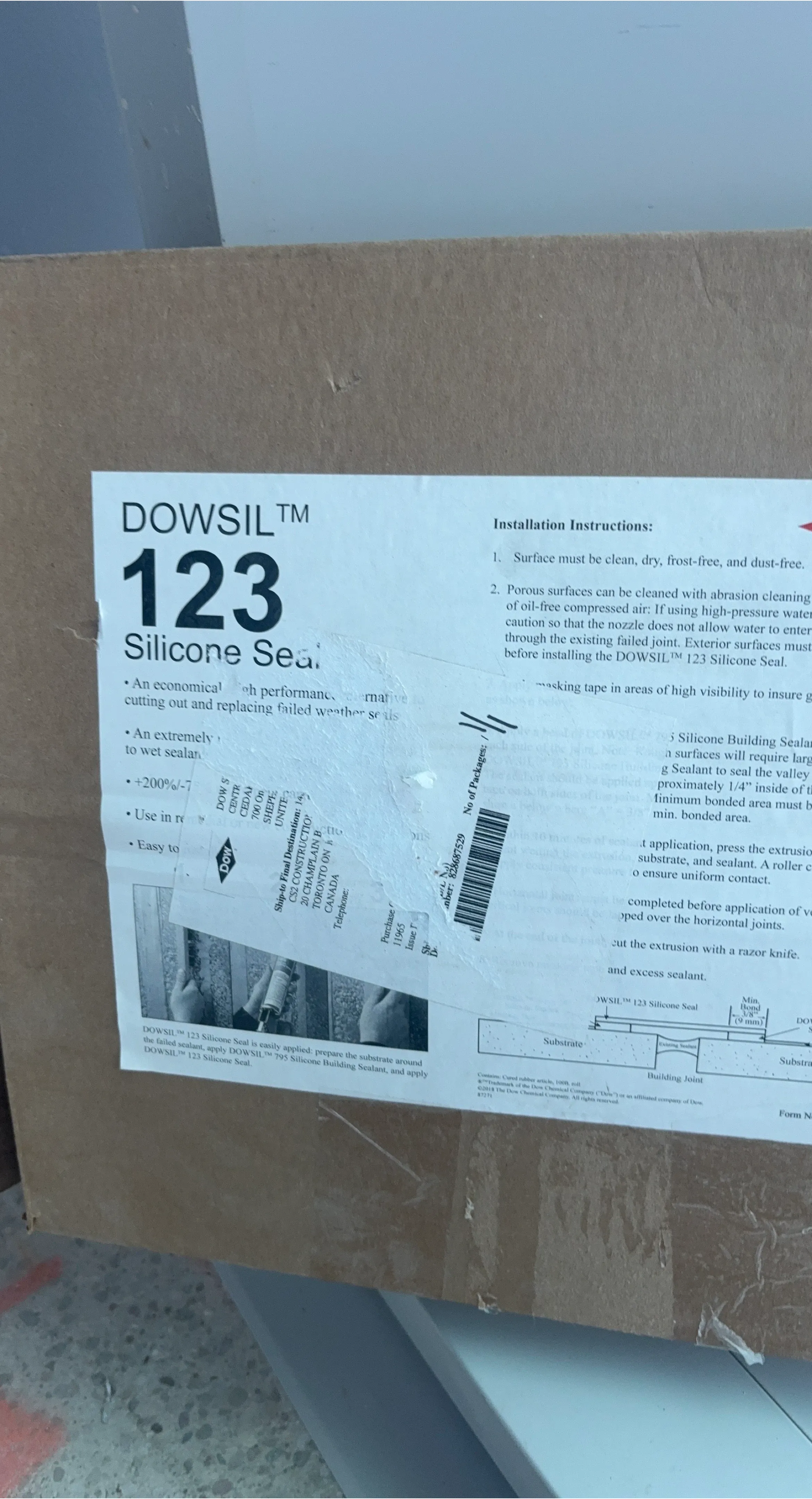 This is DOWSIL 123 Silicone Seal. It's an economical, high-performance alternative for cutting out and replacing failed weather seals. It's extremely good to wet sealants and has +200% movement capability. This sealant can be used in rain and is easy to apply.