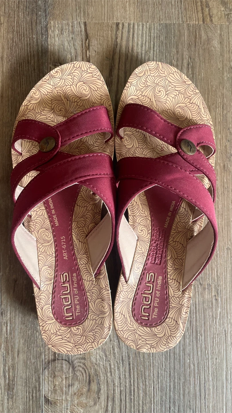 Burgundy women's sandals. Wedge heel. Cross strap design. (NEW)