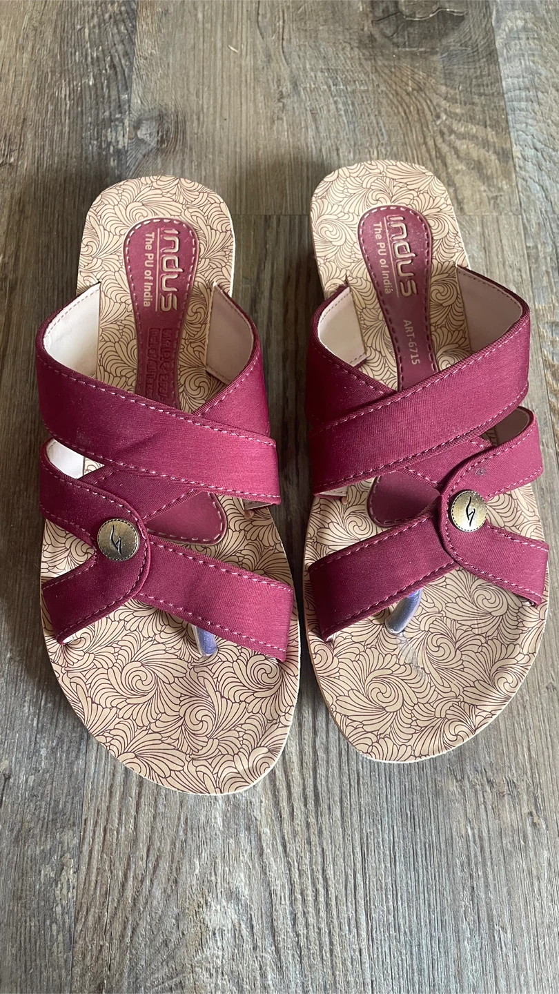 Burgundy women's sandals. Wedge heel. Cross strap design. (NEW)