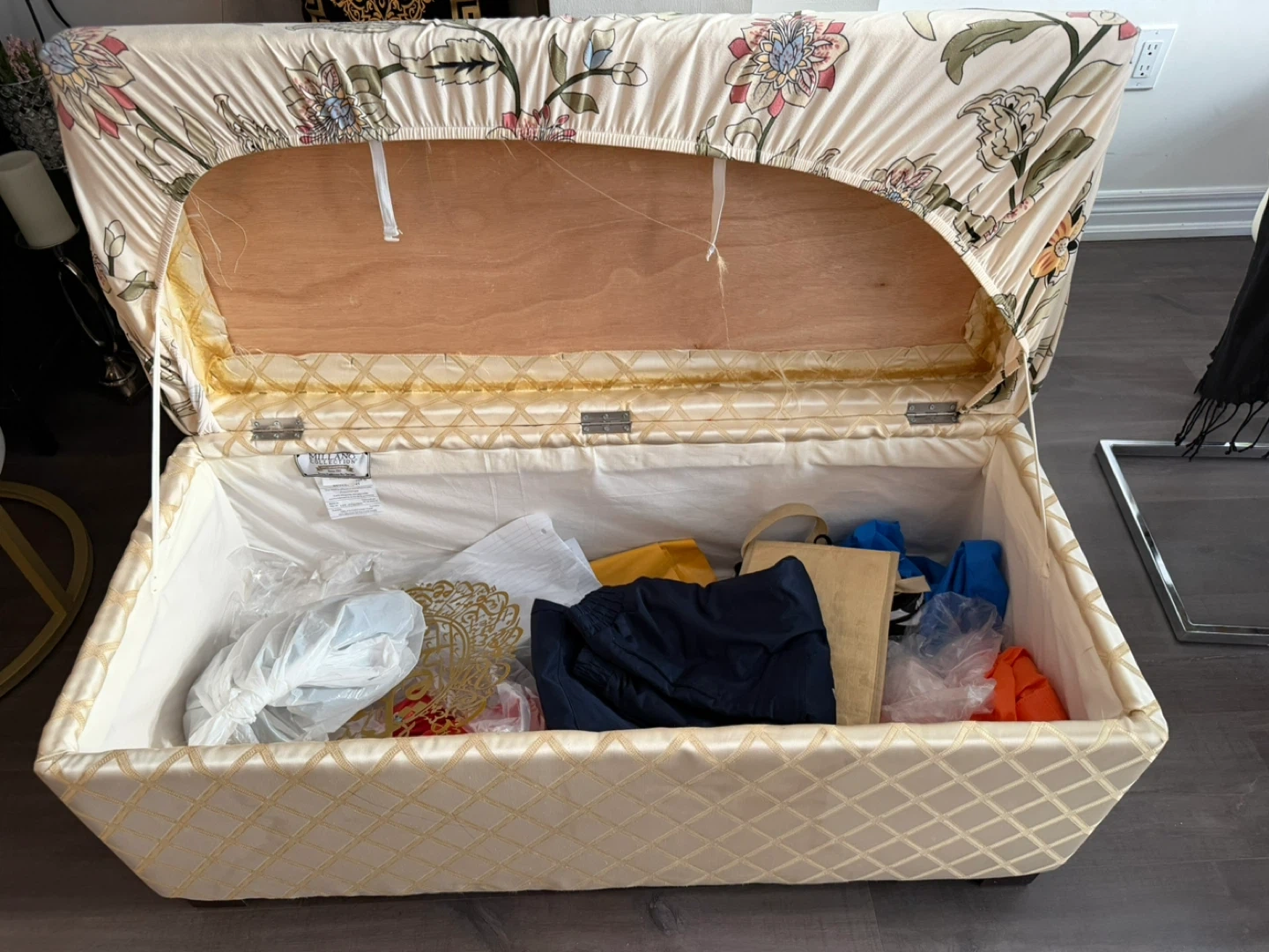 Storage bench It's perfect for stashing blankets, pillows, or other household items out of sight. Lift-top design for easy access to its spacious interior.