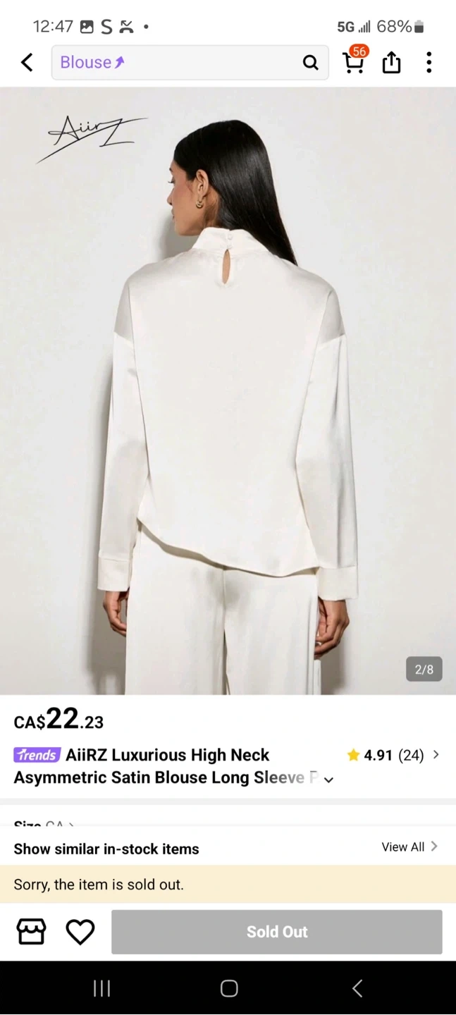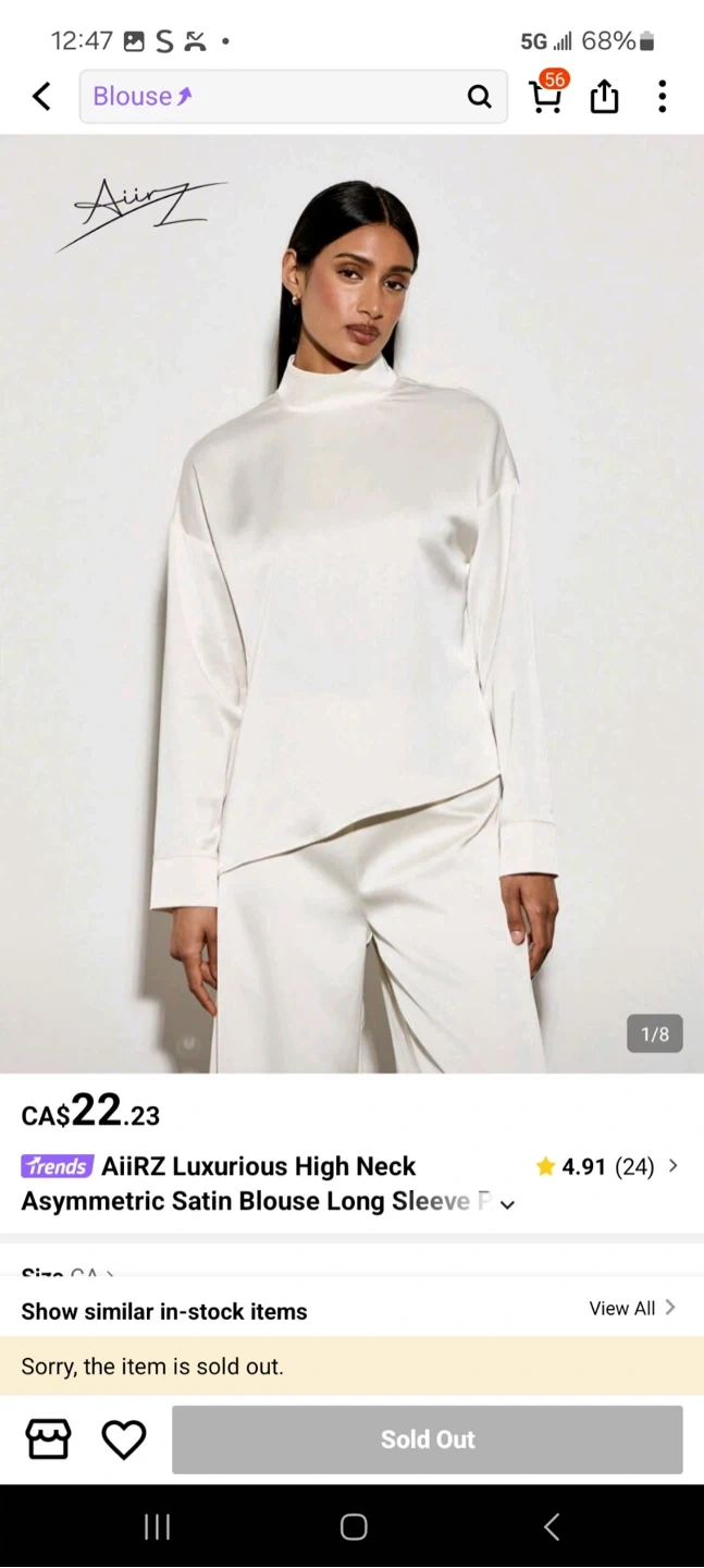 AiiRZ High Neck Asymmetric Satin Blouse NEW