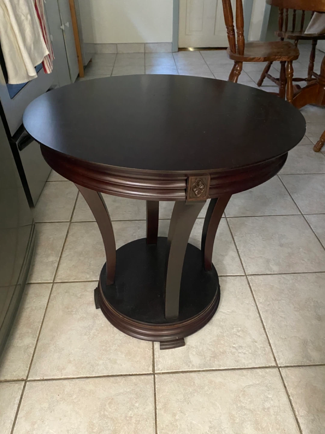 Round Dark Wood Accent Table