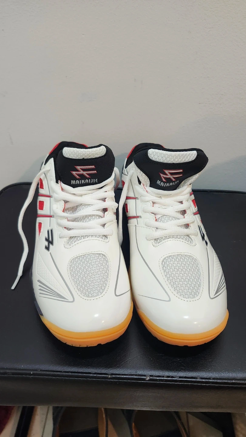 They're white with red and black accents and with non-marking sole perfect for indoor sports!