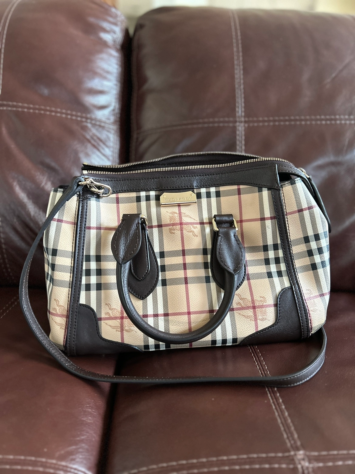 Leather Burberry handbag, can be wore in 2 styles. cross body or hand held.