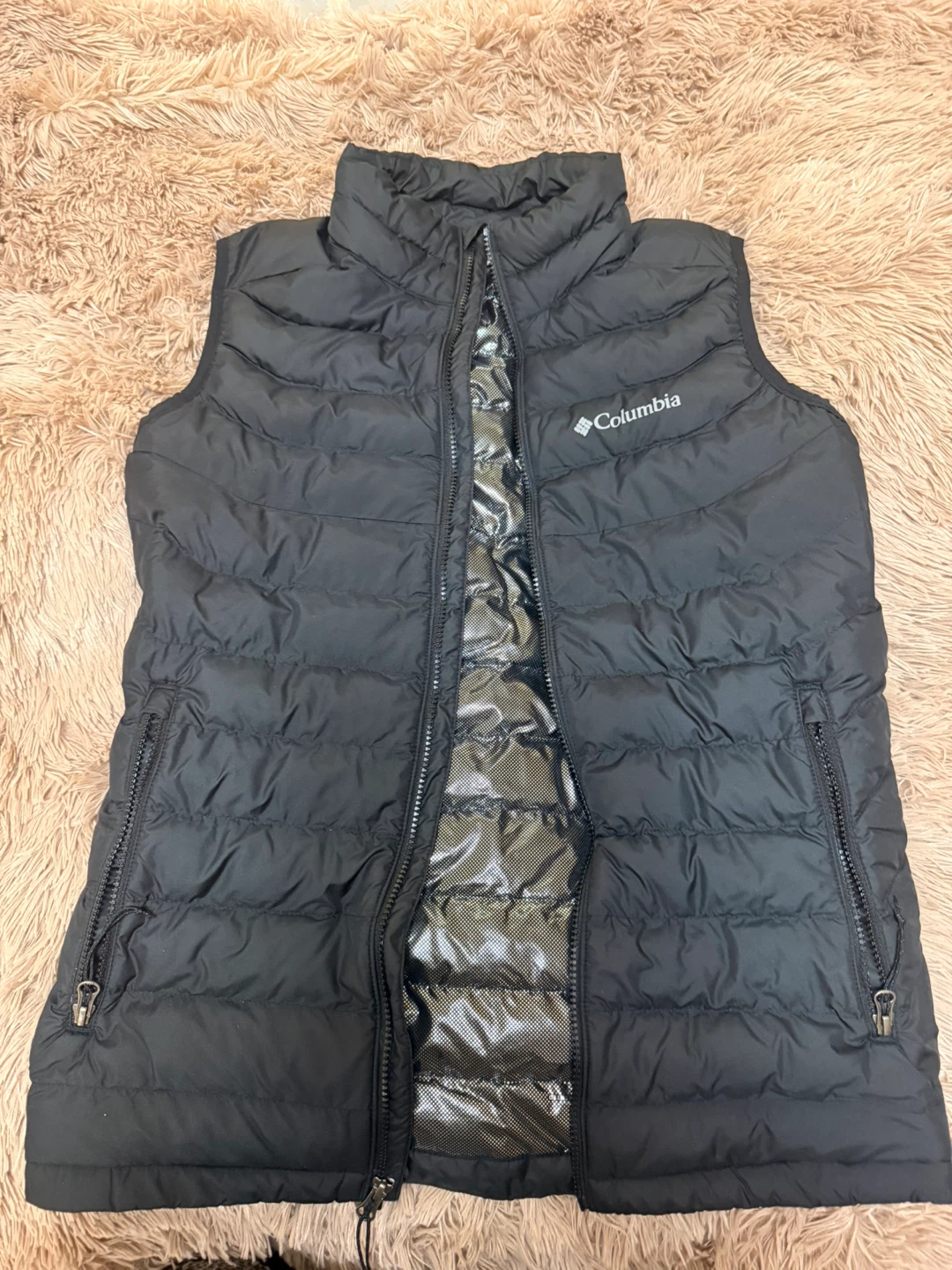 Selling a Columbia puffer vest in black. It's in great condition and ready for a new owner! Perfect for layering during the colder months or wearing on its own during milder weather. It's lightweight and comfortable, making it a versatile addition to your wardrobe.