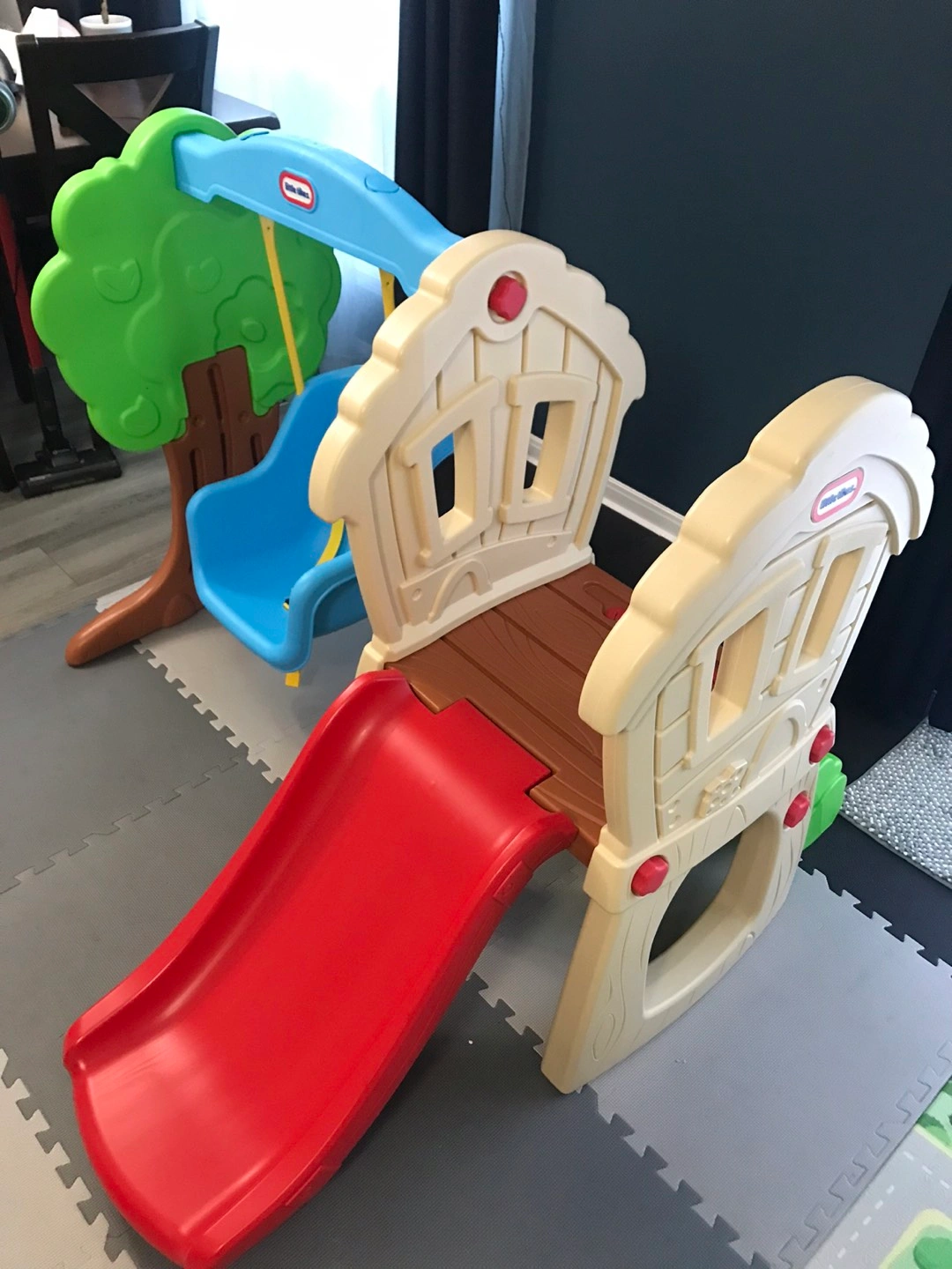 This is a set of slides and swings from Little Tikes, famous for children's ride toys.