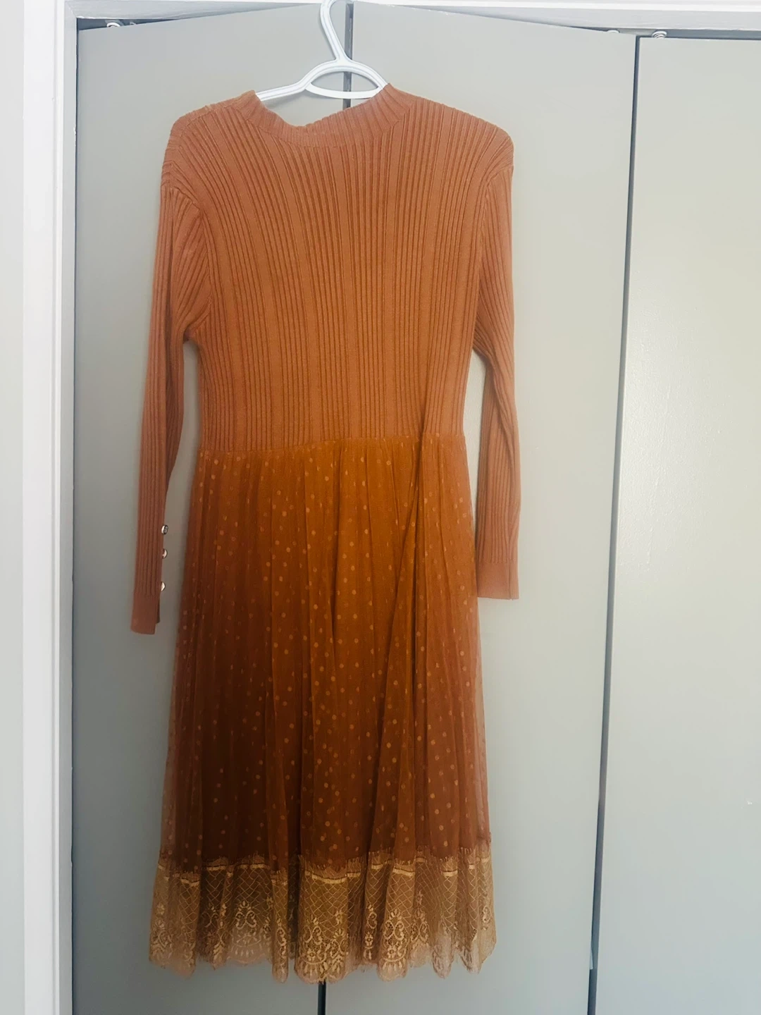 Buy & SellBrown Knit & Tulle DressBrown Knit & Tulle Dress$80Cute brown knit dress with a tulle skirt. It's in great condition and ready for a new home!WHERE TO MEETCheck LocationView MapSELLERSHDalhousie200 reviews0 chats·0 favorites·5 viewsSEND CHAT TO SELLERHi SH! I’m interested in your listing.Hi SH! I’m interested in your listing.Get the Karrot app to chatSign In to chat