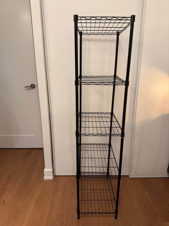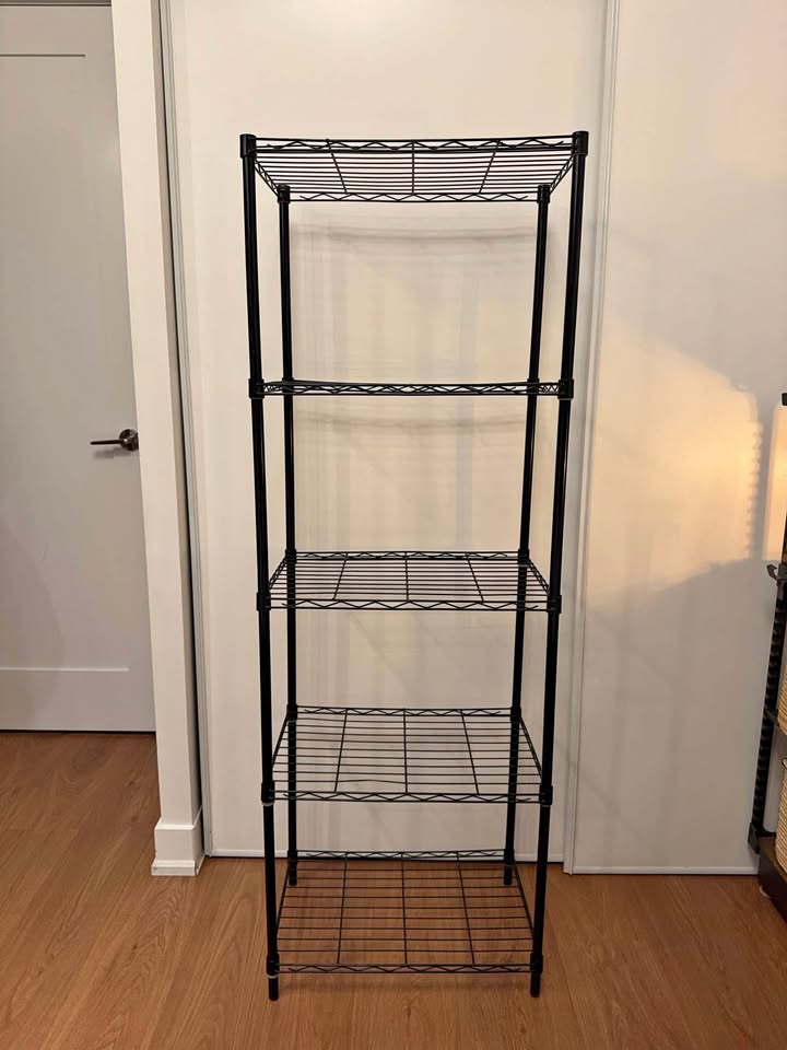 Lowkey get sorted with 3 Black Metal Wire Storage Shelves ($45 o.b.o.) to yeet your stuff on and hide behind closed doors. This could be a tool to auramax your space.