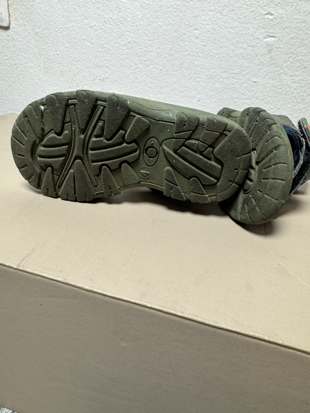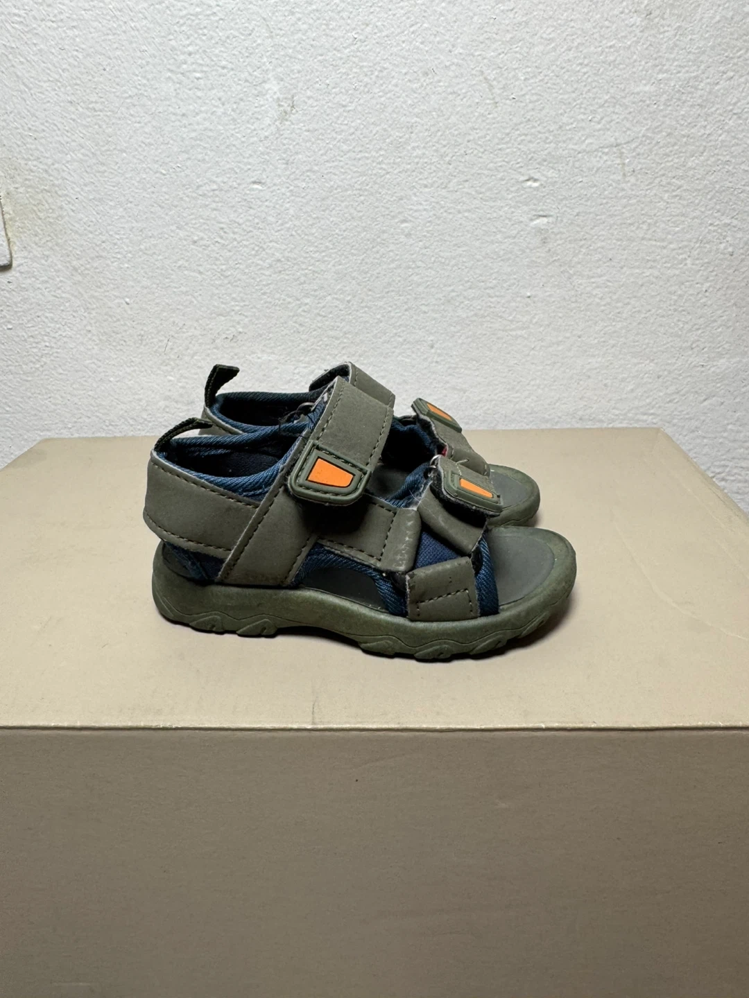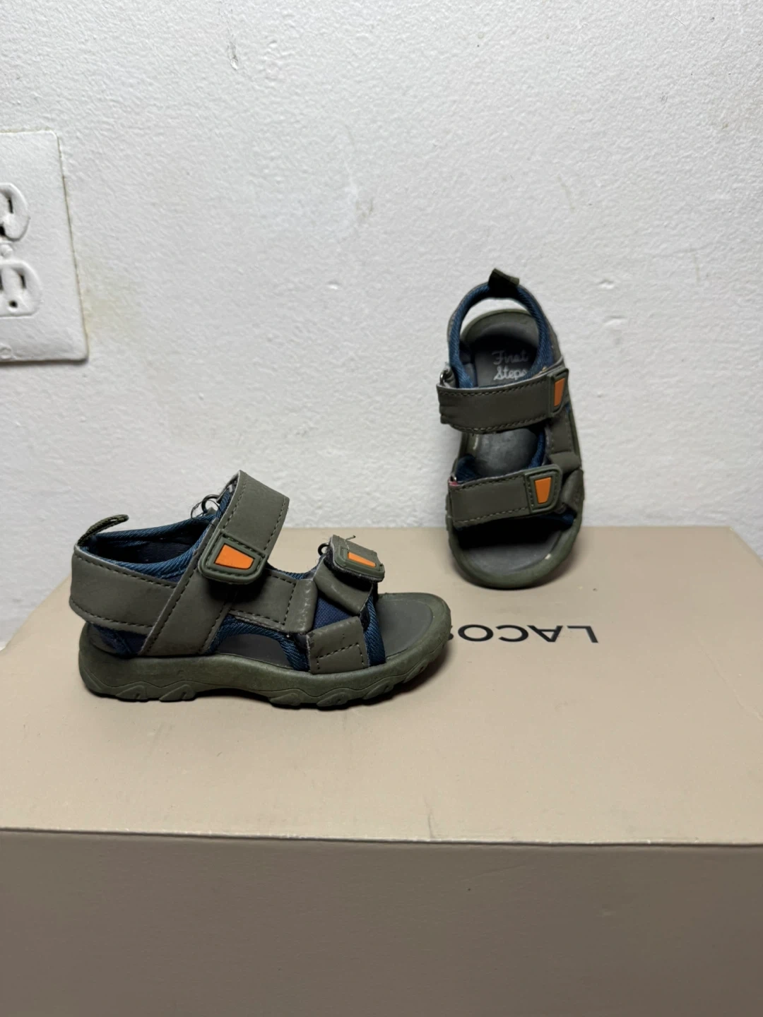 Green First Steps sandals for little ones. These feature adjustable hook-and-loop straps for a secure fit. Size is 4.