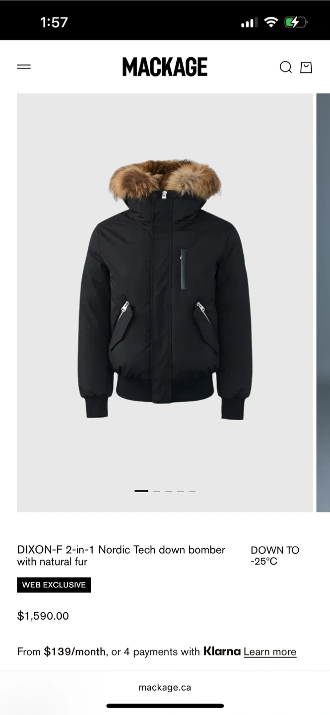 Selling a Mackage Dixon-F 2-in-1 Nordic Tech down bomber in black. It's a stylish and warm jacket for the colder months!