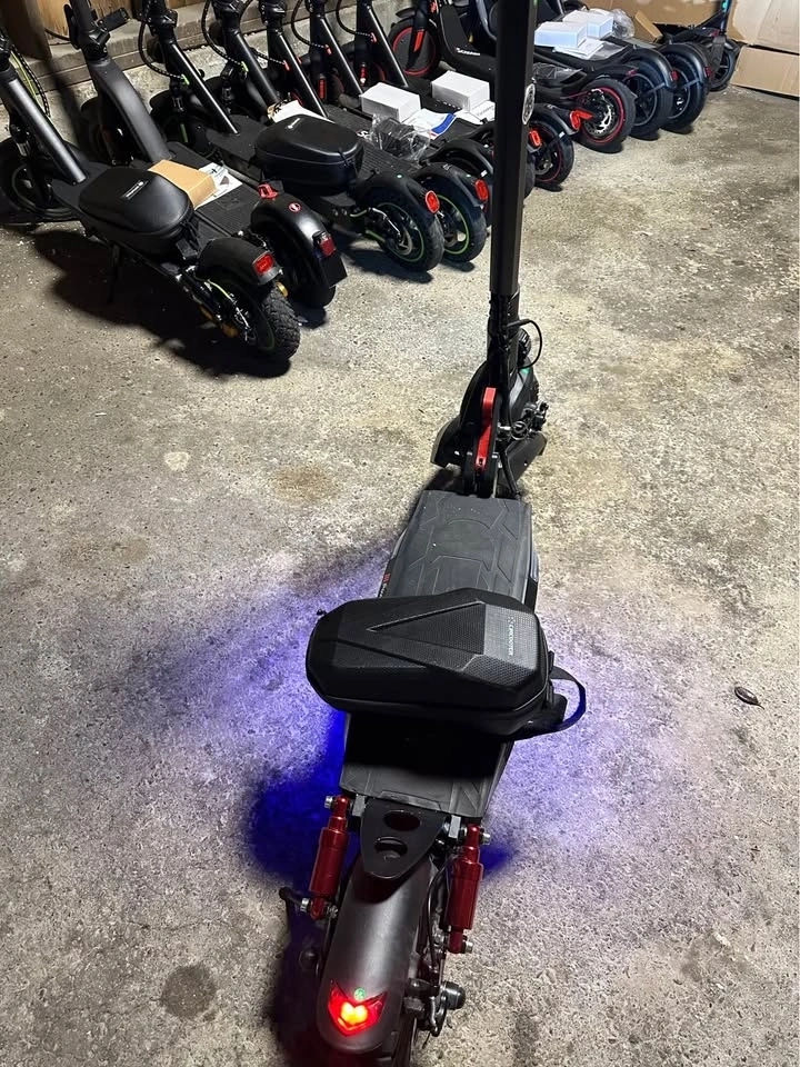 Only used less than 300kms and has super nice suspension. Specs: Motor: Peak 1000 W, Top Speed: ~45 km/h, Range: ~40 km per charge, Battery: 48 V, 12.5 Ah, Charge Time: Approximately 5–6 hours, Tires: 10″ off-road pneumatic (air) tires, Brakes: Dual disc + EABS, Max Load: 330 lb (≈150 kg), Water Resistance: IPX4 (splash-resistant), Hill Climb Capability: ~25% grade, Weight: ~24 kg (53 lb), Foldable: Yes (folds in ~3 seconds), Dimensions (Unfolded): ~120 × 60 × 128 cm, Operating Temp Range: -20 °C to ~60 °C (−4°F to 140°F), Lights: Front + rear integrated lighting.