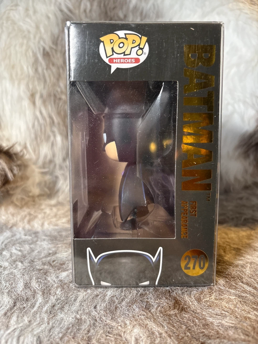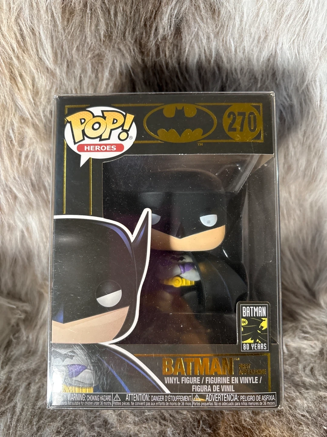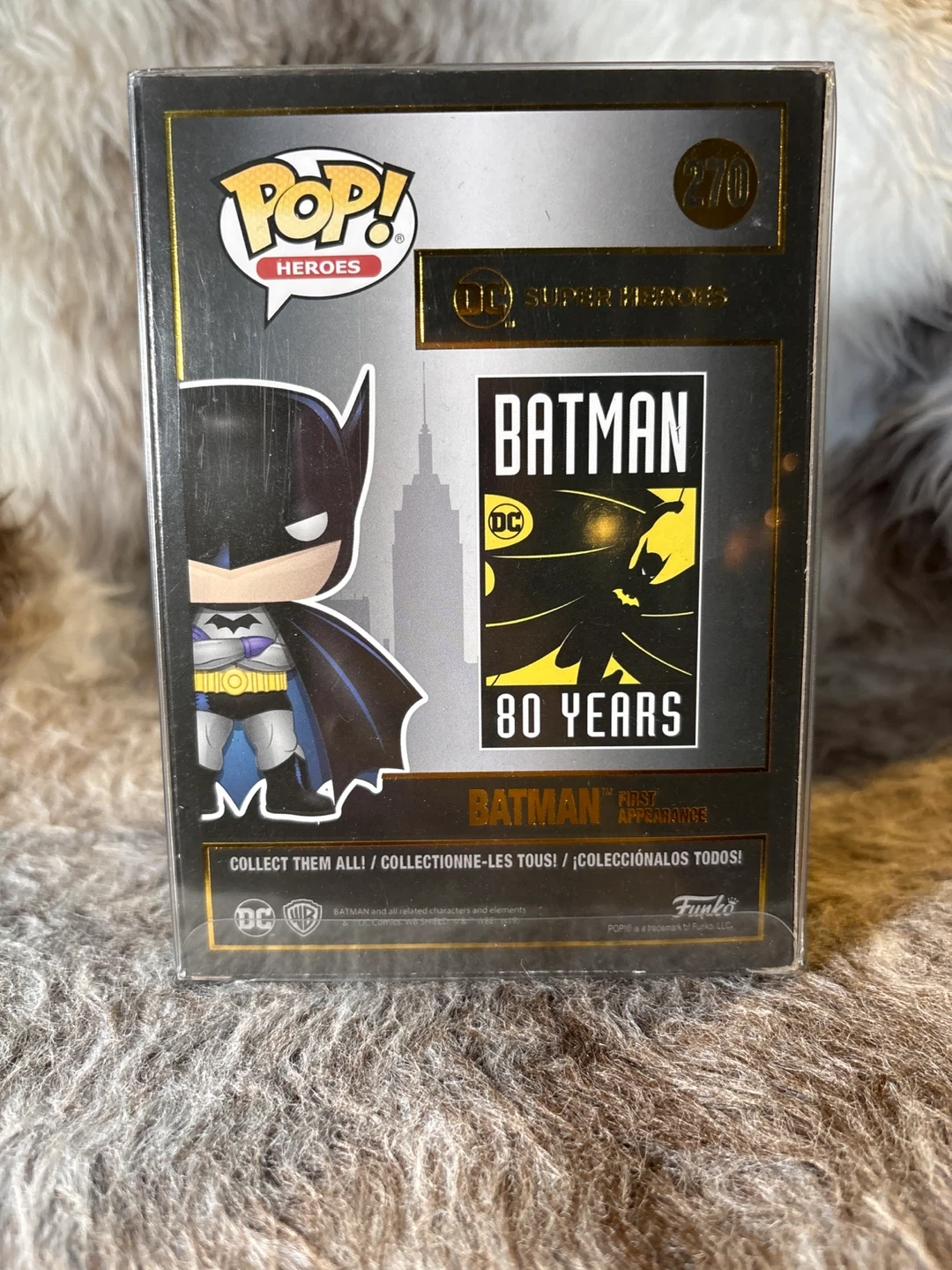 This is the Funko Pop! Heroes Batman celebrating 80 Years, number 270. It's a collectible item for fans. In its original box with a protective sleeve.