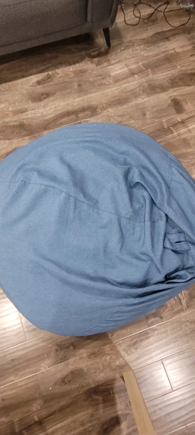 (Barely used) Comfy large bean bag chair in a nice blue colour. It's made of a durable fabric material. Great for lounging!