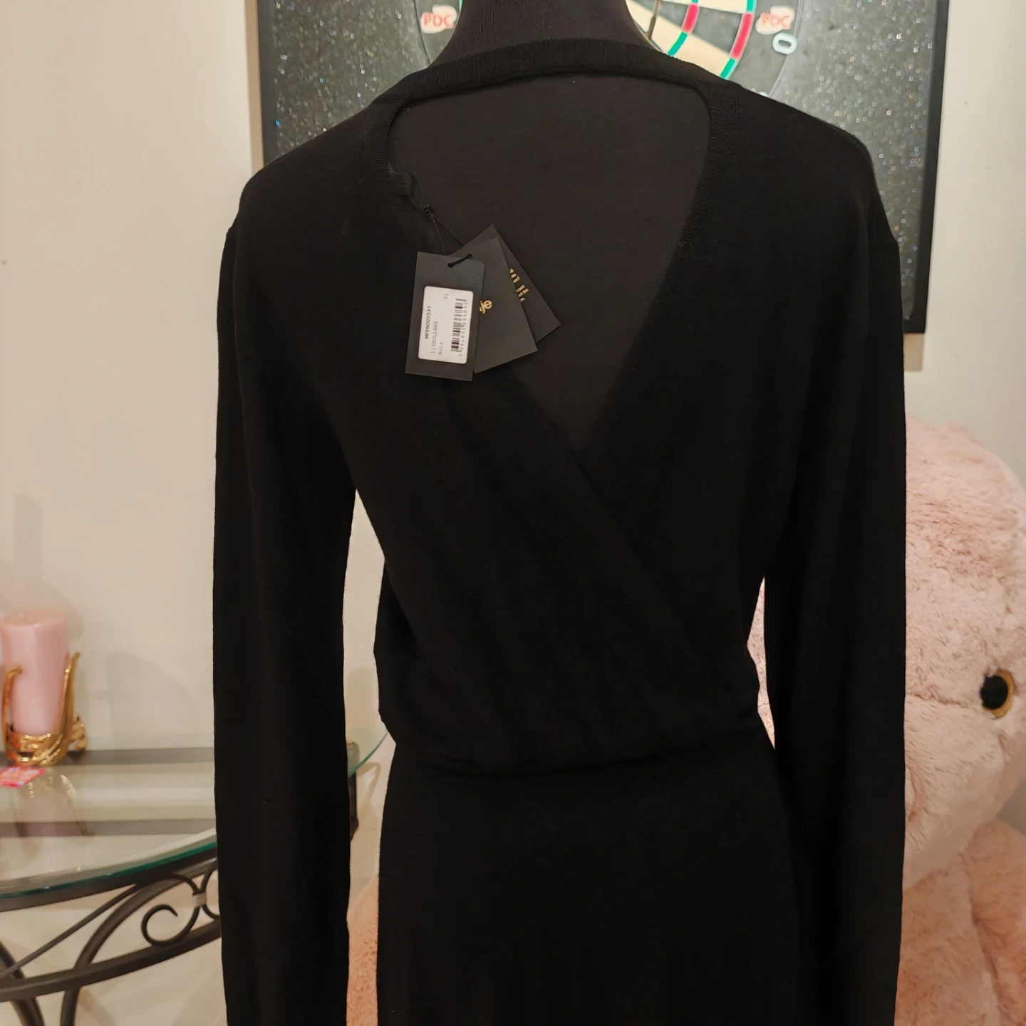 Maje Black Wool Drape Sweater Rolland Open Back Midi Dress s