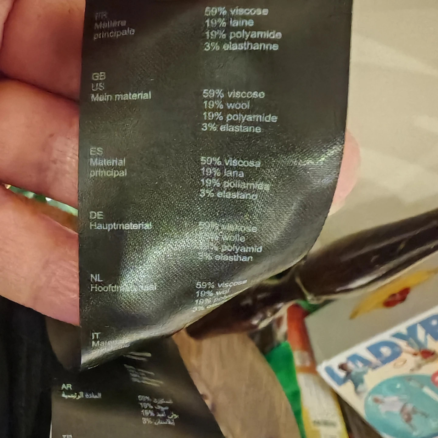 * Material: 59% Viscose, 19% Wool, 19% Polyamide, 3% Elastane