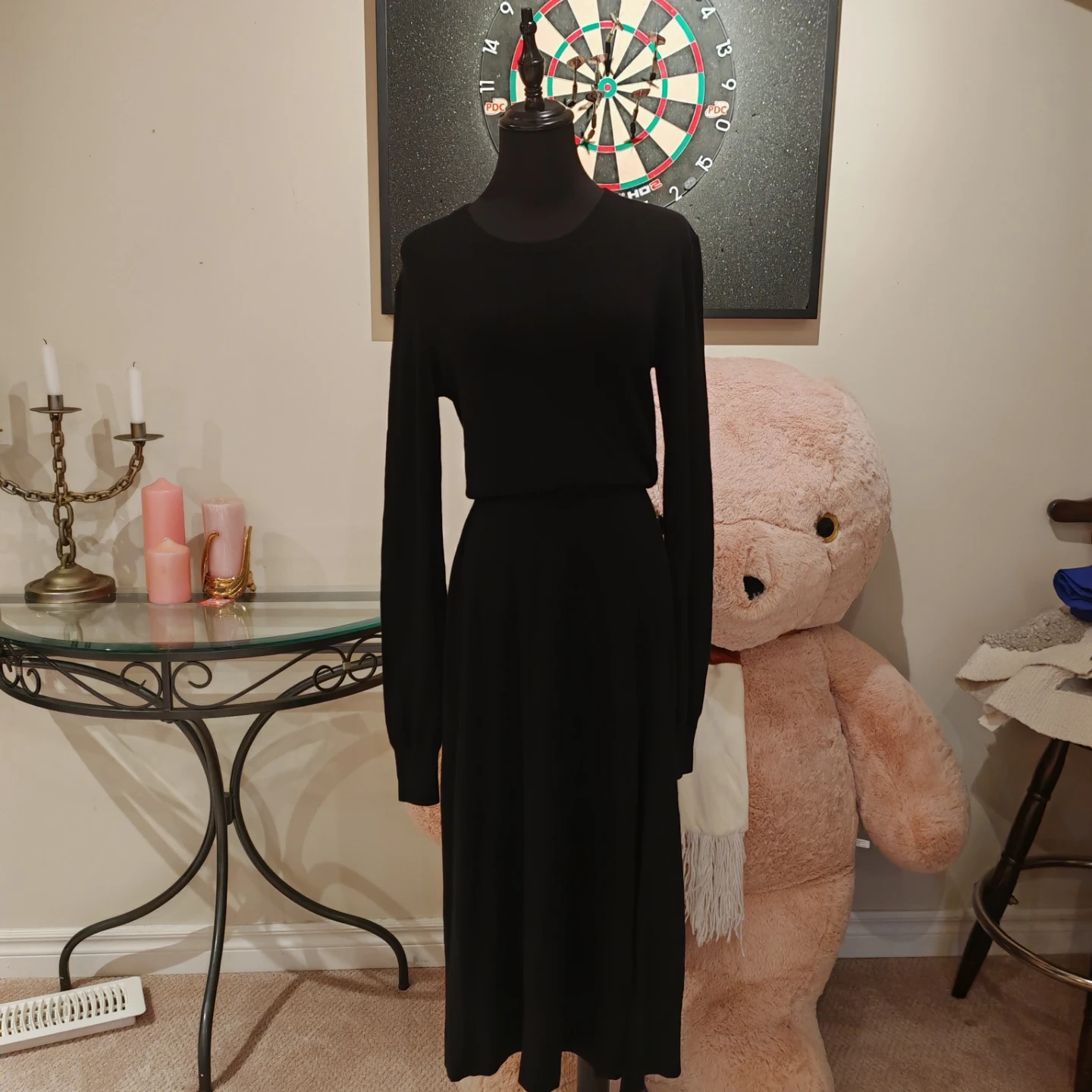 Maje Black Wool Drape Sweater Rolland Open Back Midi Dress s