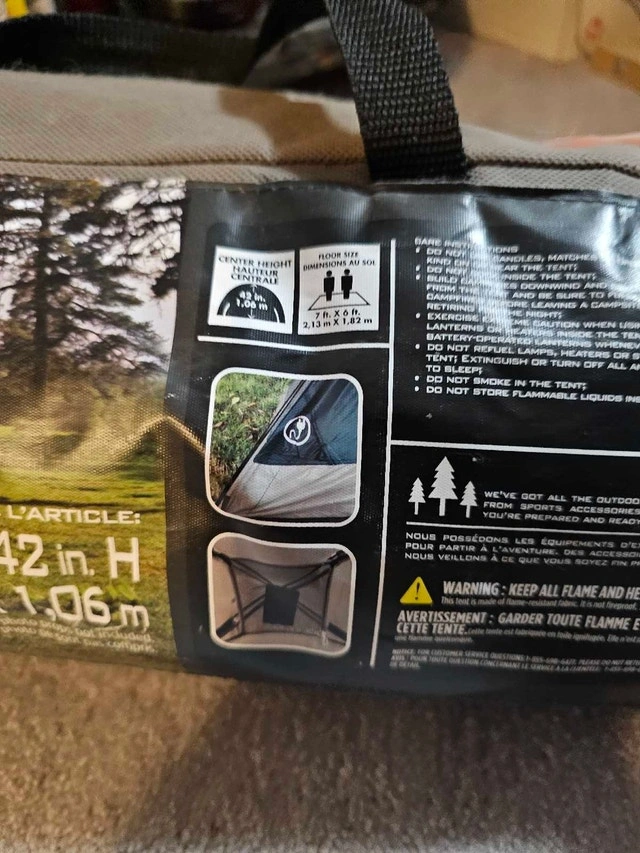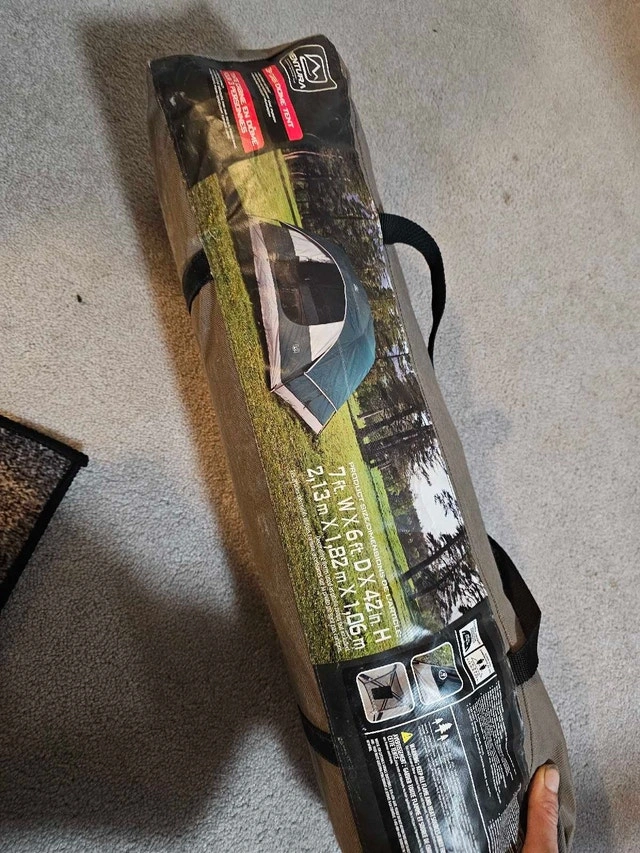 Get ready for your next outdoor adventure with this Ventura 3-person cabin dome tent, perfect for camping trips! This tent features a comfortable interior space and easy setup, making it ideal for both beginners and experienced campers alike. This item is in used condition - used it twice. Specifications: * Capacity: 3 person * Type: Cabin Dome Tent * Center Height: 42 inches. Located in Pickering.