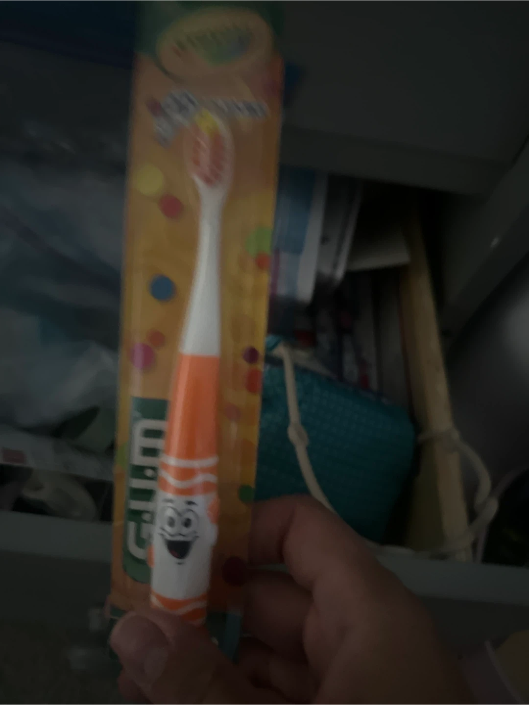 This is a brand new Crayola toothbrush, still in its original packaging. It's designed with kids in mind, featuring a fun character on the handle. This toothbrush is ideal for encouraging good oral hygiene habits in children.