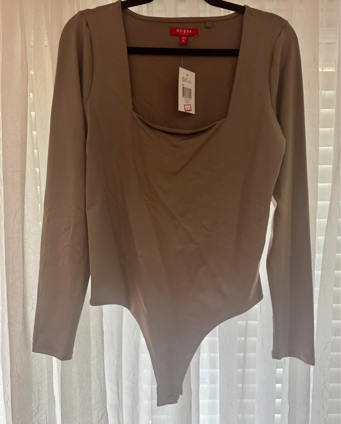 Guess Long Sleeve Square Neck Bodysuit - Taupe - XL