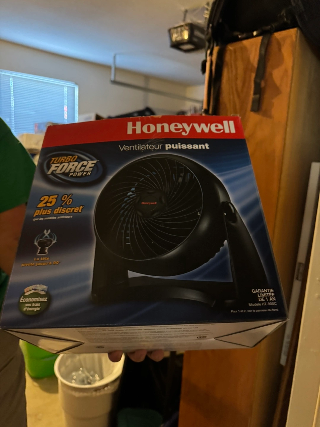 Selling a Honeywell Turbo Force Power fan, model HT-900C. It's a powerful little fan that's also 25% more discreet than previous models. The head pivots up to 90 degrees, and it helps save on energy costs. Box included!