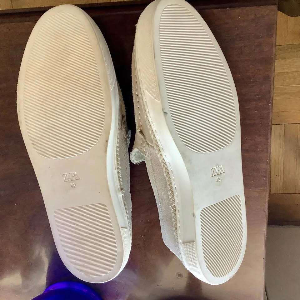 These Zara slip-on loafers are crafted from off-white suede leather, making them a versatile and stylish choice for casual occasions. Featuring a comfortable design with a slip-on closure and round toe shape, these shoes in size EU 42 US 9 are perfect for the summer, fall, or spring seasons. Ideal for men looking for a trendy and practical footwear option. Men’s size 42 which is roughly US 9. Mint condition as these were a gift last summer and wrong size for me. Worn once!