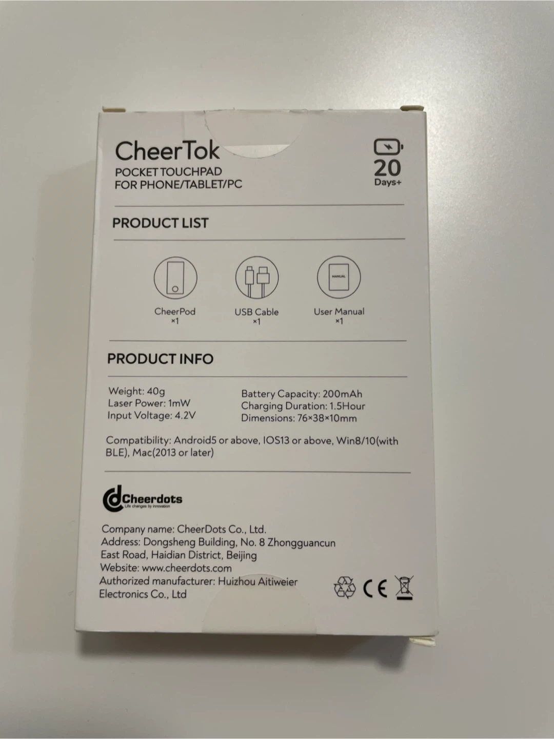 -【5.0 Wireless Bluetooth connectivity & Long battery life】CheerTok has an ultra-low latency of 7ms, turn on Bluetooth and your CheerTok, instantly connect and use. The next time you give a speech, this presentation clicker can be automatically connected without plugging in any receivers, no more hassles of finding receivers. CheerTok is equipped with a Type-C charging port and can be used continuously for 40 hours with a full charge in just 1.5 hours.