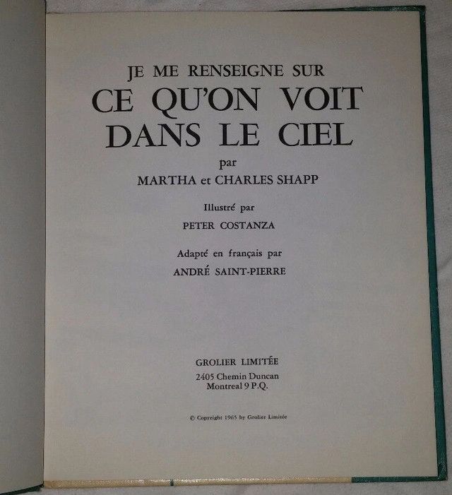 Vintage 1965 French Hard Cover Book - In NEW Condition. $5.00. From a smoke-free home. Message to arrange an afternoon/evening pick-up only. See Kijiji map link for approx. location.