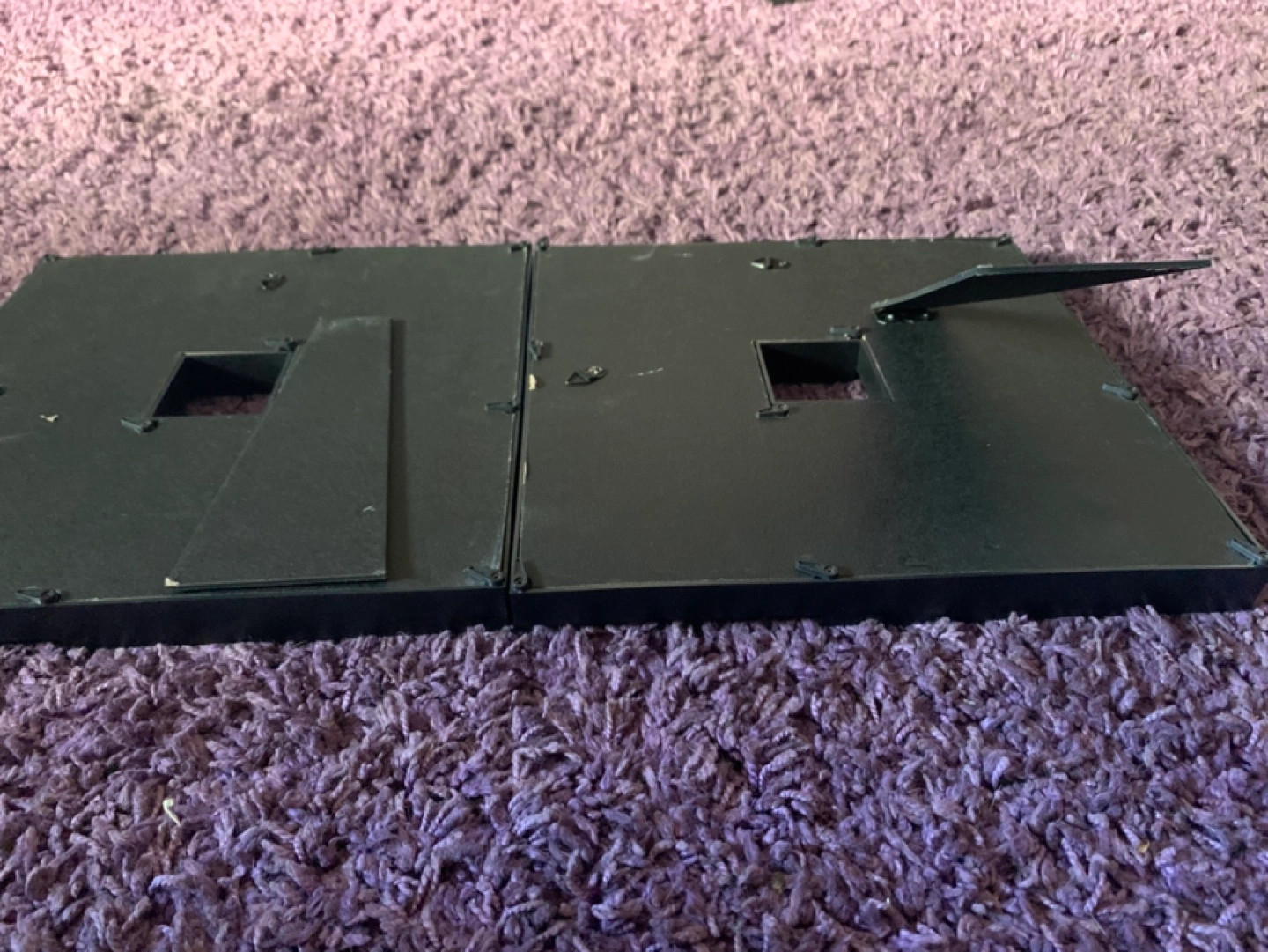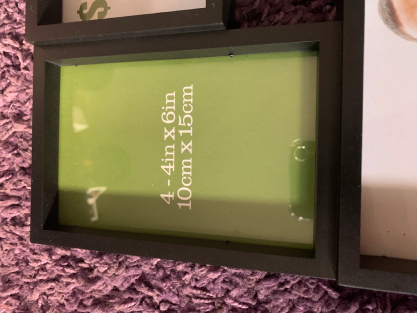 Set of two black collage picture frames. Holds multiple photos. Each frame features six openings for 4x6 inch photos. Great for displaying family photos.
