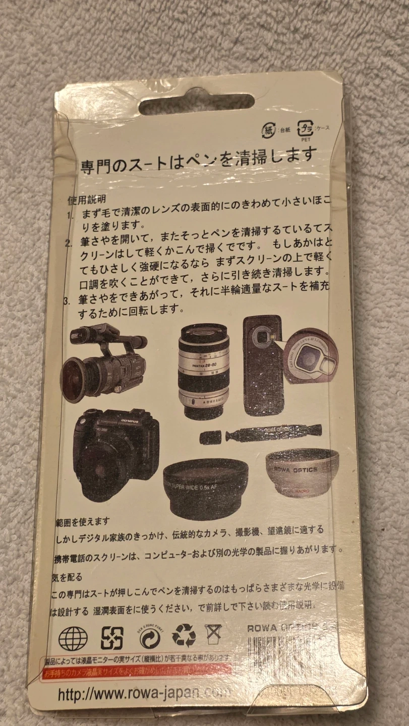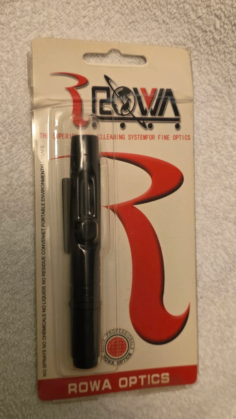 This is a new ROWA Optics lens cleaning pen. It's a super safe cleaning system for fine optics. The pen is portable and environmental safe. This cleaning pen can be used for cleaning lenses, screens, and other optical surfaces.