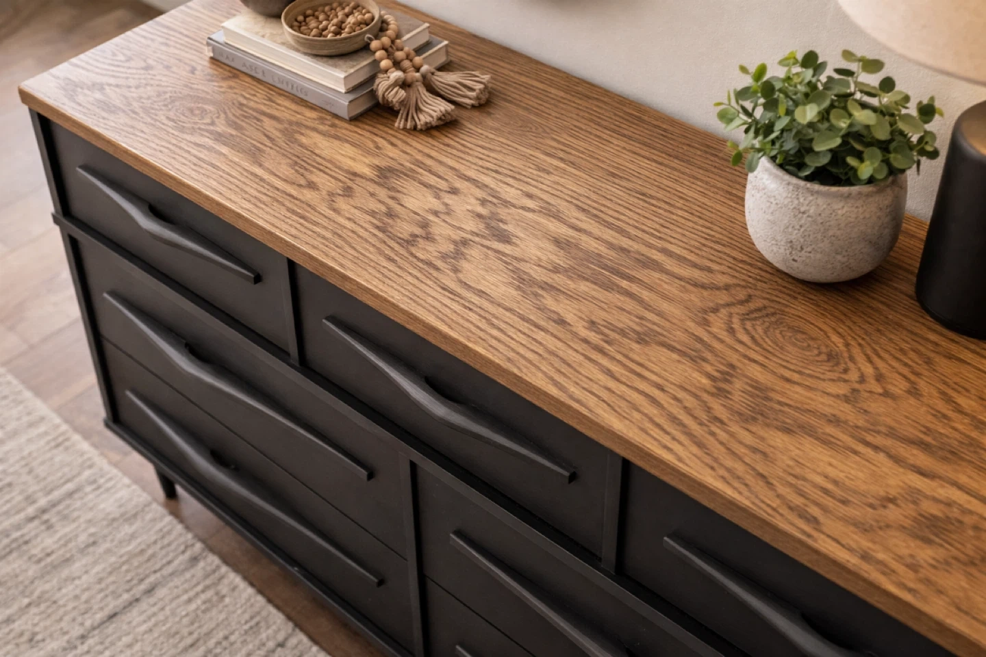 • Dovetail drawer construction throughout — solid, high-quality craftsmanship
