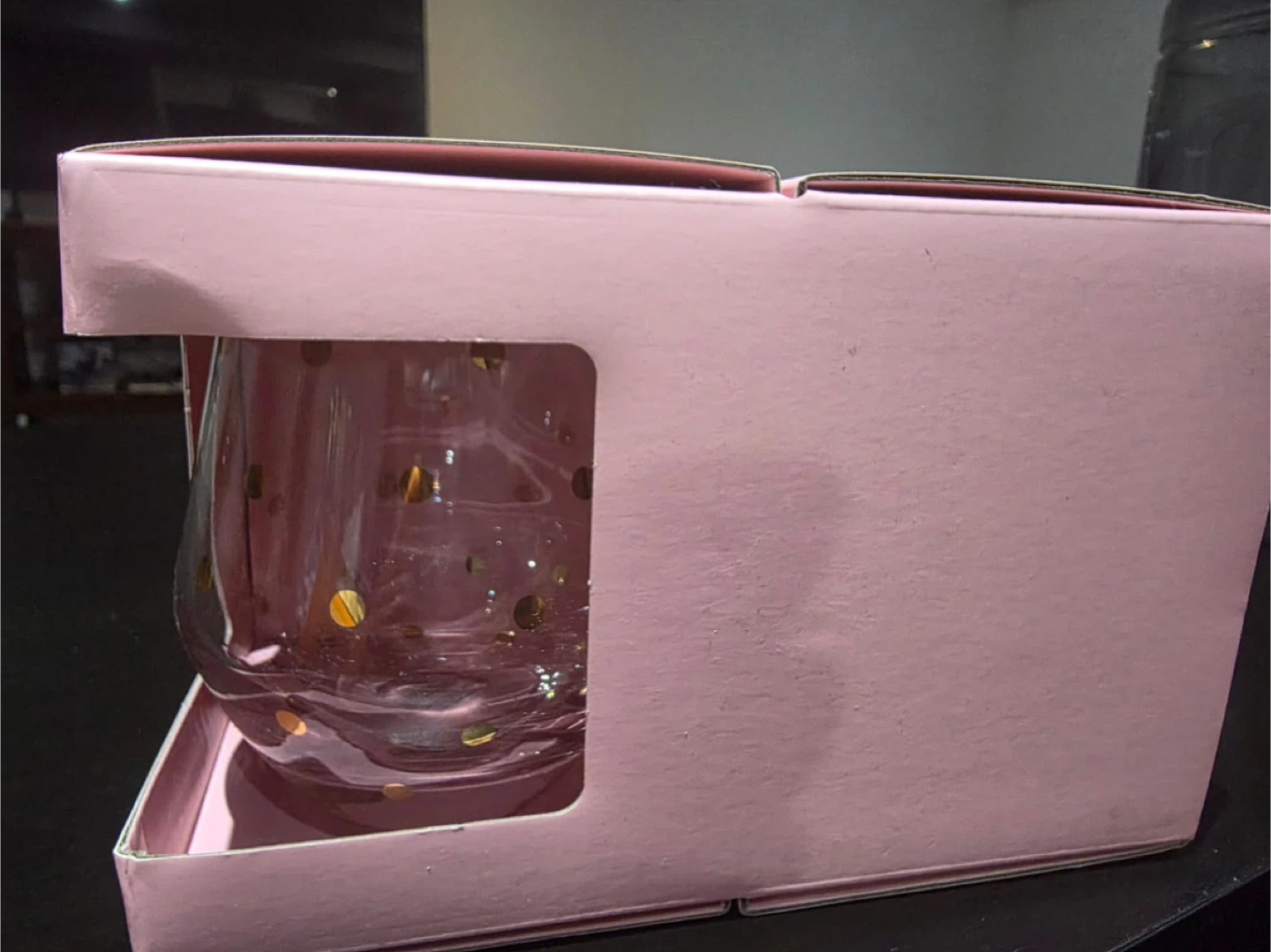 Kate Spade New York Larabee Dot Gold stemless wine glasses. Set of 4, 12oz (354.8mL) each. Glass material. These are great for parties or everyday use!