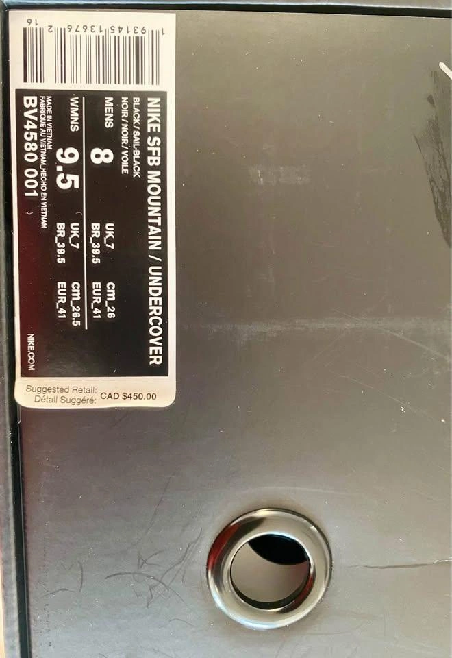 Undercover x Nike SFB Mountain Black is built of a wide range of rugged, trail-ready materials, while additional branding "Undercover" logo hits the heel region, reminding you that isn’t any old SFB Mountain. Size Men's 8 (Women's 9.5)