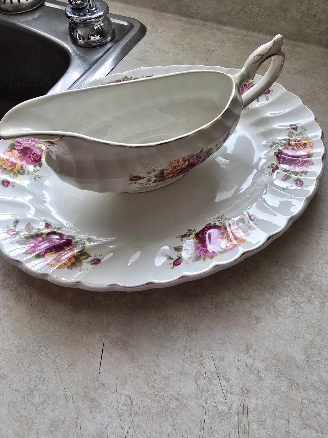 Myott Rose Garden Ironstone Gravy Boat with Underplate