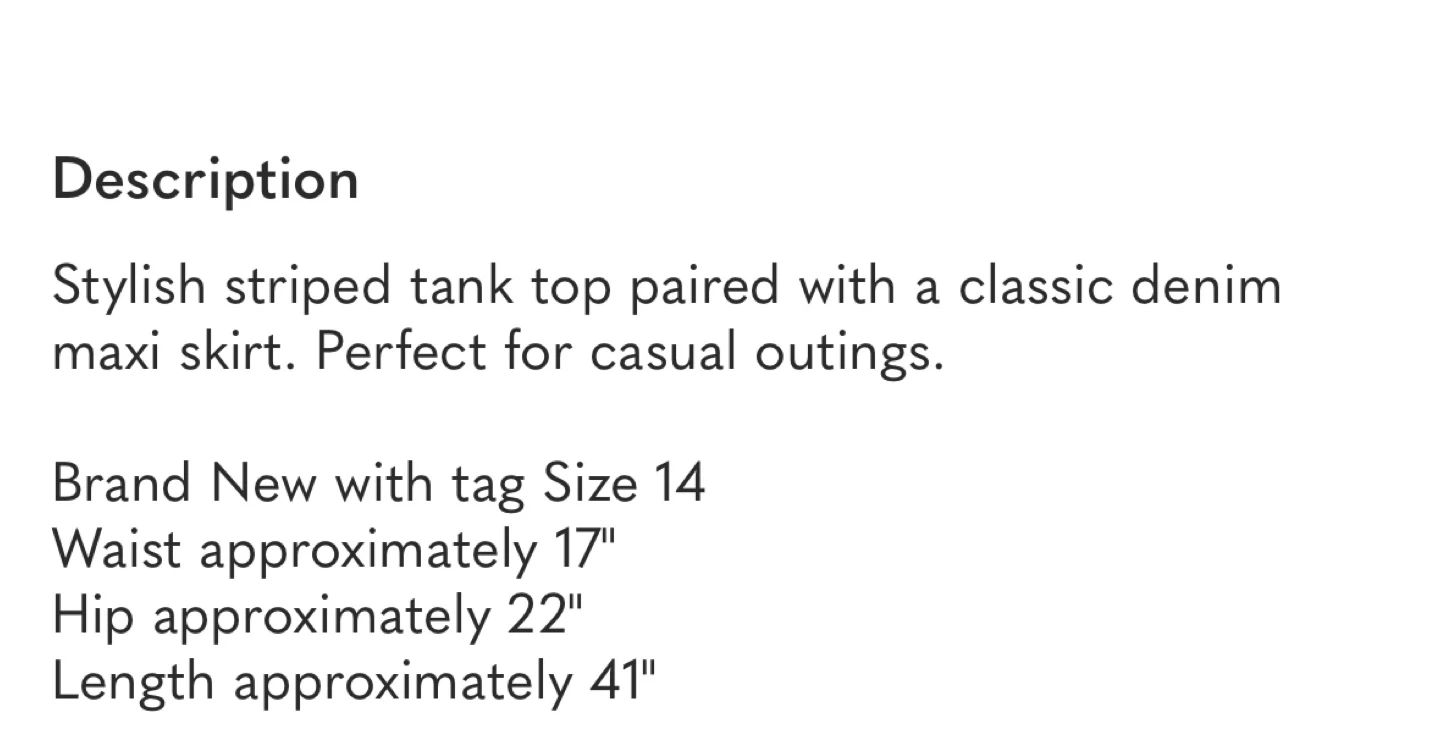 Buy & SellWe The Free Denim Maxi Skirt Size 14 Sapphire BlueWe The Free Denim Maxi Skirt Size 14 Sapphire Blue$56This is a blue denim maxi skirt from We The Free. It's a size 14 and features a front slit. The material is denim.ConditionNewSizeLargeBrandWe The FreeWHERE TO MEETKerr streetView MapSELLERverifiedJanaGlen Abbey770 reviews0 chats·1 favorites·82 viewsSEND CHAT TO SELLERHi Jana! I’m interested in your listing.Hi Jana! I’m interested in your listing.Get the Karrot app to chatSign In to chat