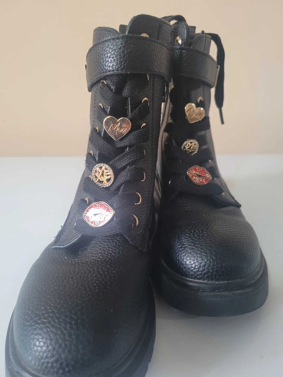 Black Combat Boots with Decorative Charms Size 13
