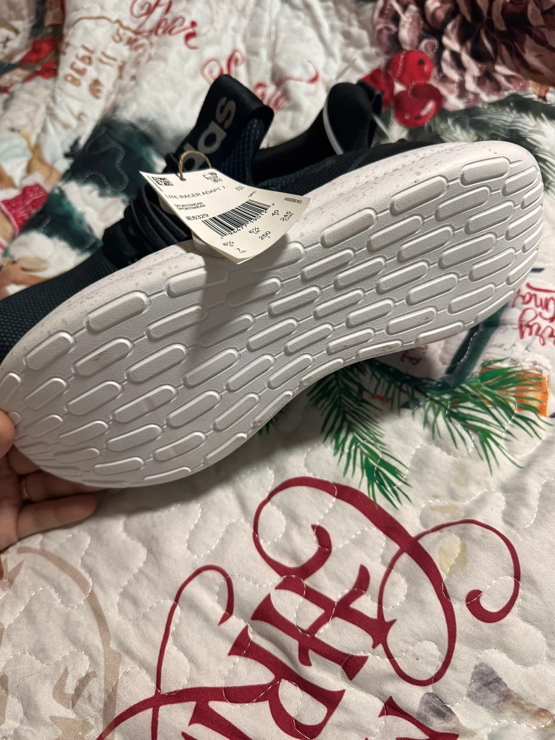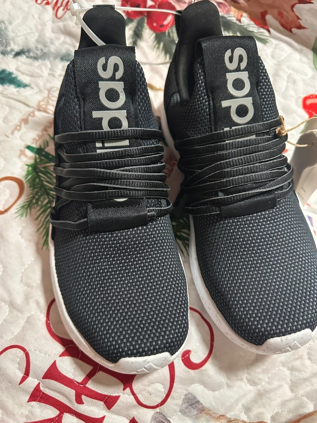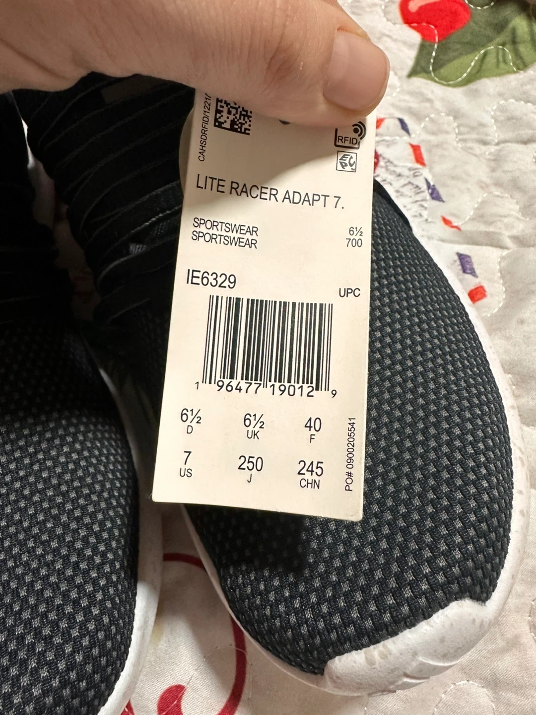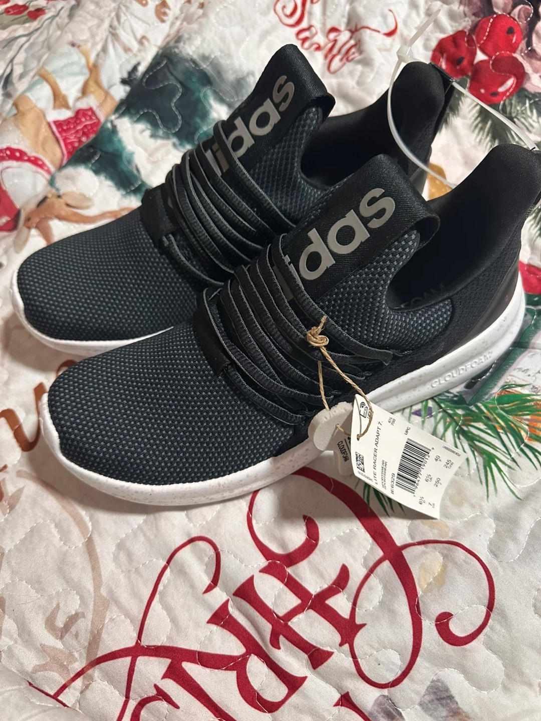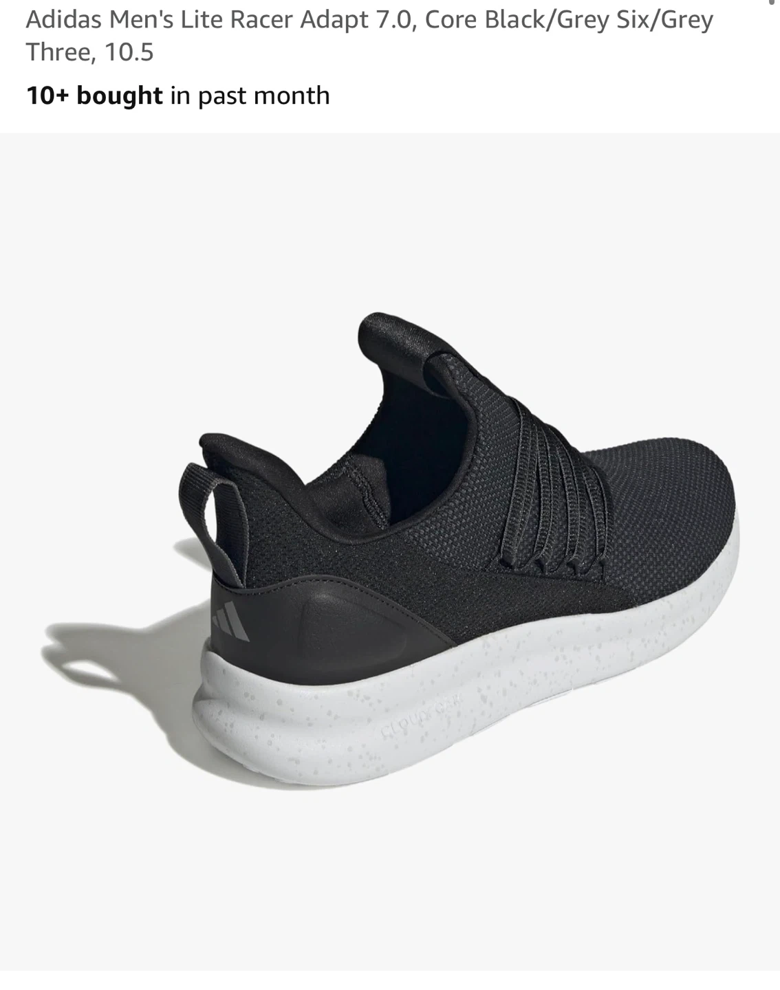 These are Adidas Lite Racer Adapt 7.0 running shoes in black. They feature a mesh upper and Cloudfoam cushioning. Perfect for everyday wear or light workouts!
