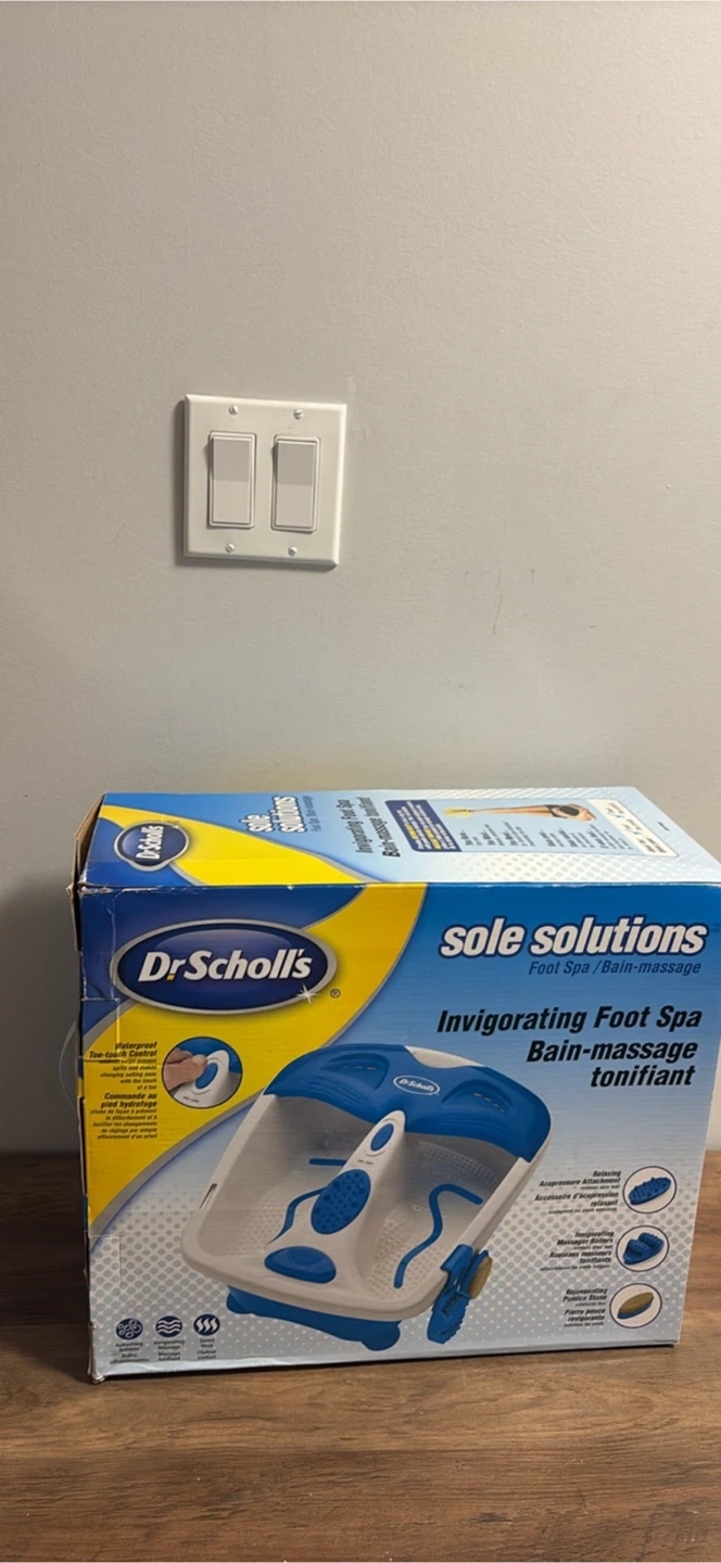 Dr. Scholl's Sole Solutions Invigorating Foot Spa with heat and bubbles. Provides soothing relief to tired, achy feet. Includes massage rollers and vibration.