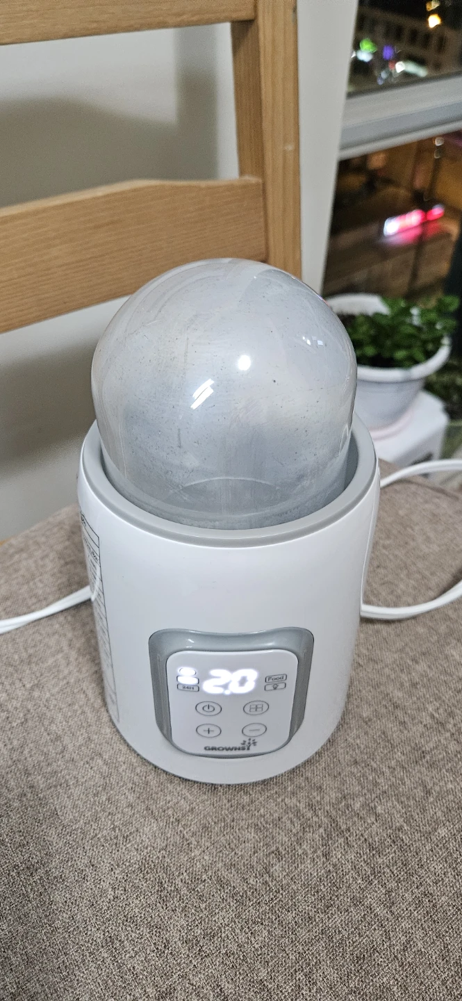 This Grownsy bottle warmer is designed to keep milk warm in 24 hours. It's BPA-free and made with safe material. This device helps warm bottles for feeding.